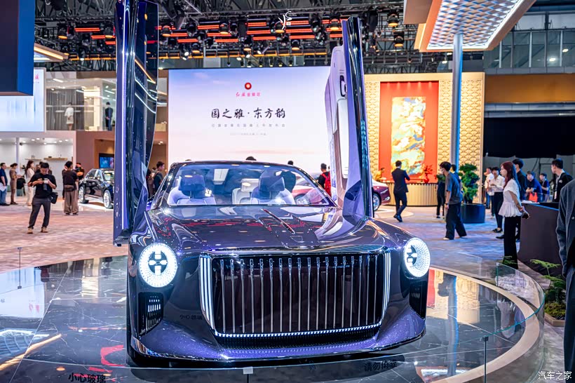 询问了相关工作人后得知这是红旗金葵花的概念车型,在北京车展上亮相。