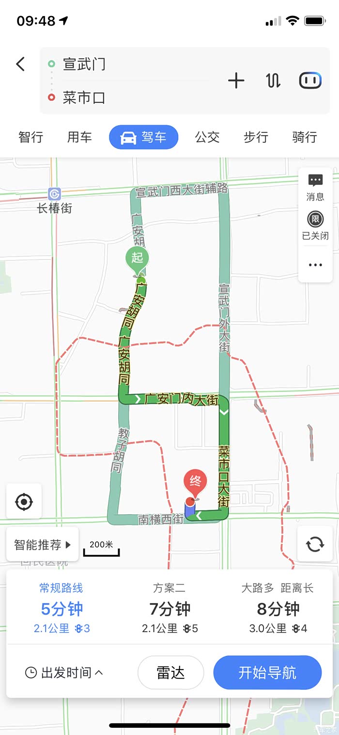 现在看地图宣武门到菜市口距离大概是2公里。