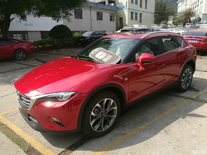 预算20W出头,25W包牌内,对比过其他对手,都不满意,要么只能中低配,要么太大,都否决,CX4选什么配置?设计师给的19大脚不能少,2.0的全部否却,2.5低配配置寒酸,只剩下个19寸轮毂设计师外壳,里面马自达应有的驾驶东西缺失,不完美,不能忍,那就直接旗舰,21W多车价上牌后全包245100,没加价!!!4s送十桶机油.没其他送。