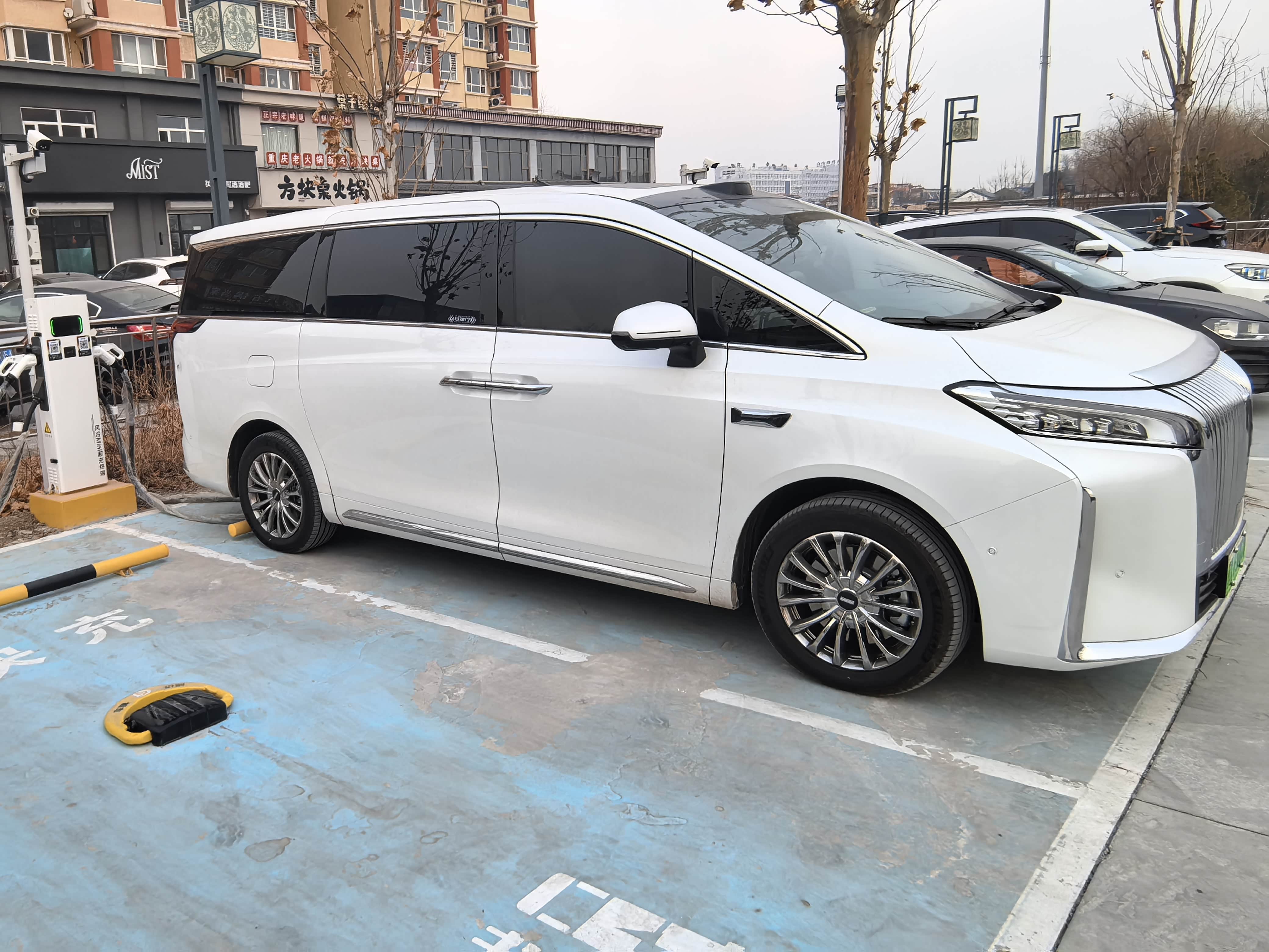 那天我先充的电,然后奔的天津,全程就是智能混动,标准模式,第一站去的佛罗伦萨小镇开了115km左右,第二站去的万象城又跑大概50km,在万象城也充电了,插上电枪就不用操心了,从手机APP随时能看充电进度。天津这边充电很方便,在商场楼下就有公用充电站,一会儿电就补上来,高山8挺让我省心的,完全没续航焦虑。
