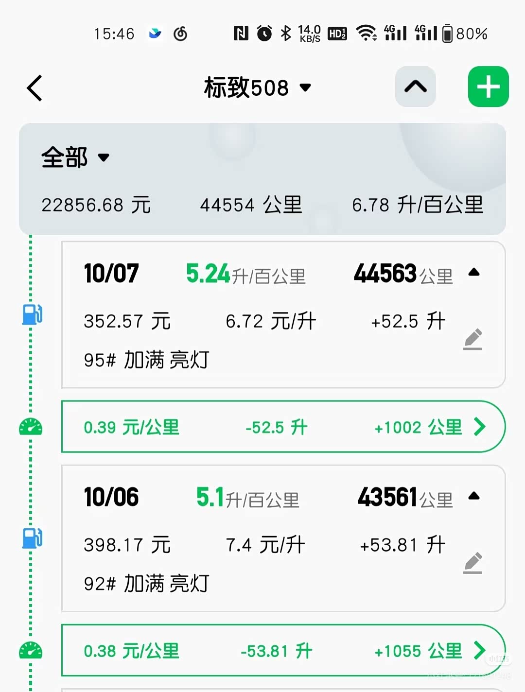 从广州出发到大理、香格里拉一个来回4600公里左右,满载五人(4成年人1儿童)和一后备箱行李,空调常开,路况包括高速,市区,乡镇路,山路(绝大部分高速),几段堵车,路况好110-130,路况一般就跑90-100,堵车时就没法稳定了,蠕动和堵停都有,此次行程app和表显都是5.2个油,很准,58升的油箱,这个级别和动力水平,理想路况一箱油能跑1000+很满意了,极限跑1100+问题不大 。一个国庆跑的全身是泥土和虫子,回来第一时间去给大狮子内外洗个干干净净,看着优雅的线条和靓丽的车身就舒畅,为当初的选择点赞。