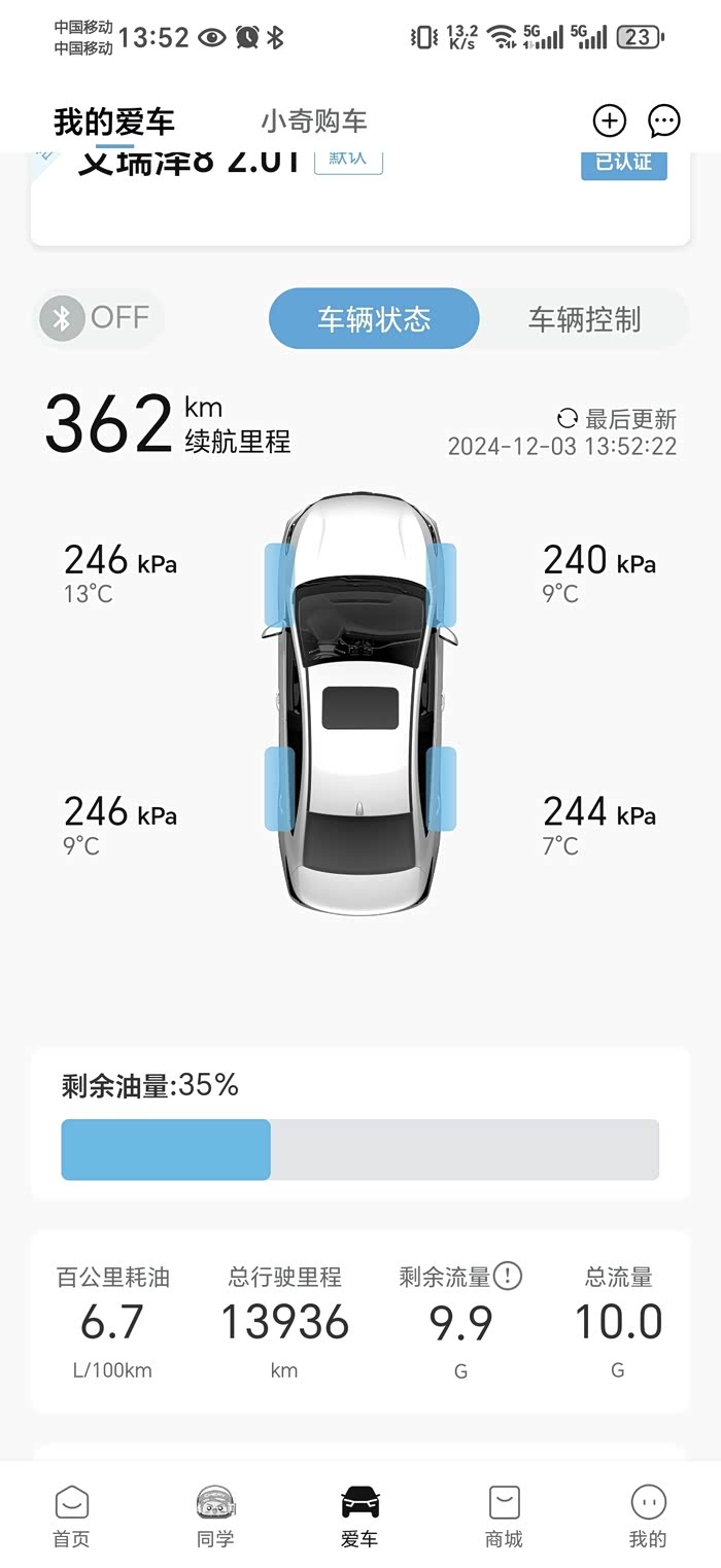 艾瑞泽8油耗表现是真的可以啊,我开的是2.0t的,256匹马力,提速嘎嘎猛,但是油耗是真的行,平时走国道基本上在6个油左右,最低开到过5.1个油,如果是走市区堵车情况比较严重的情况下,大概在8个多,基本上市区加高架综合表现在7个油左右,一箱油可以跑六七百公里,而且是92的粗粮,好像2.0t加92的发动机挺少的,基本上都是95,一箱油下来要隔三四十块钱,一年下来也不少钱,而且我的是双离合的,平时暴力驾驶比较多,但是不堵车油门使劲踩也就七个多点的油耗,非常得进,上次搞了点鲜花装饰了一下,给对象来个小惊喜,氛围灯一开感觉太得劲了,年轻人第一台买艾8没毛病