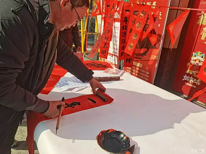 在道路狭窄拥堵而且还有人流穿过路段,我一般都是开启ECO经济驾驶模式,一来可以控制油耗,而来控制转速让速度不要太快。复杂路段一定要谨慎有耐心。 堵车完全没有影响我们全家的好心情,把车停在凯德广场后面的地面停车场,拉着孩子的手去人民公园写春联,商业银行举办的迎新春活动,不需要花钱,安逸的很,远远就看到红色的春联迎风飘扬,有*在帮忙写,也可以自己动手写,还有剪窗花,孩子剪了一个春字,年味十足!