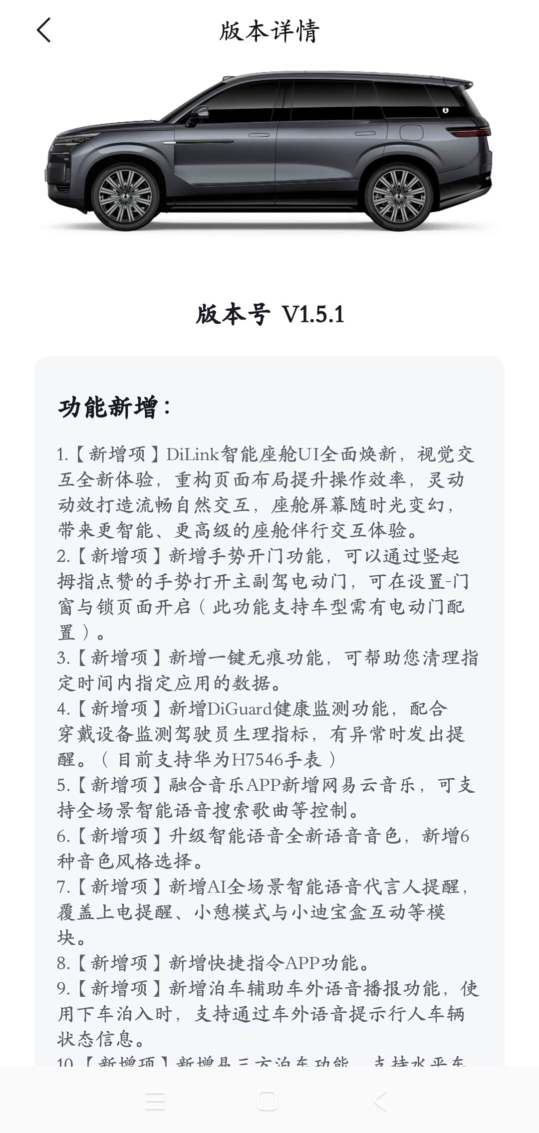 系统升级了1.5.1,辅助驾驶自动过收费站,大拇指点赞开启前排车门,尾灯投射感应开门,都很好用。点赞开门用处不大(且要解锁情况下使用,可以设定钥匙靠近自动解锁)