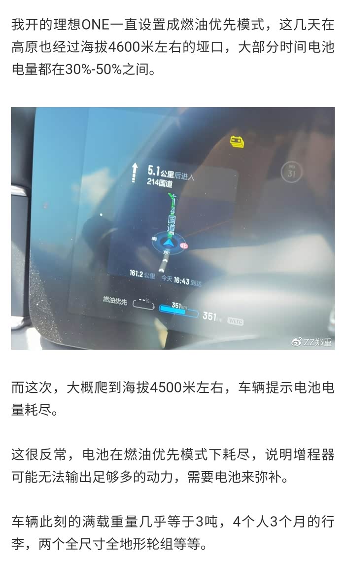 车主说一直设置成燃油优先模式,电没了,增程器输出动力不够。看看理想工程师怎么忽悠的。小白鼠们不容易啊。