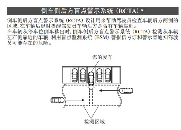 这才是正解:倒车侧后方盲点警示系统 (RCTA),你要看手册啊。