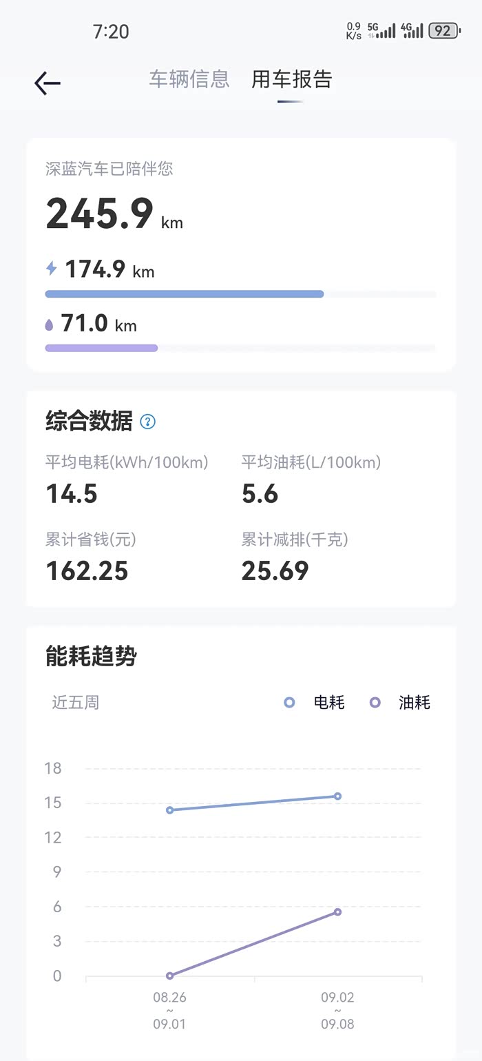作为一款增程式电动车,S07带给我的最大感受就是用车成本的下降。虽然它带有增程器,但基本上我都是电力驱动为主,只在长途的时候使用增程器。平时在家或者办公室充电,一度电大概0.6元左右,深蓝S07的电池容量是31.18kWh,充满一次大概20块钱上下,能跑大约160-180公里。如果你像我一样每周通勤约500公里,一周充两次电的费用大约就是40块,相比传统燃油车的加油费用真的省太多了。