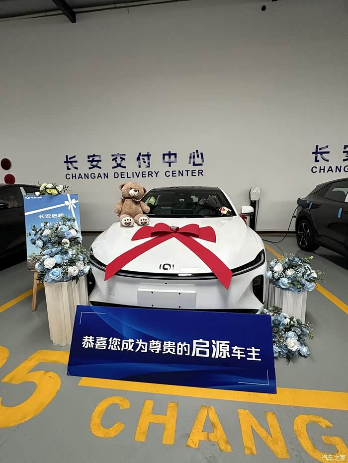 2025年已经来到了,回首过往,作为24年首批提车用户还是有不少感慨的。从下定到提车经过了将近4个星期的等待,终于迎来的属于我的提车日期。依稀记得销售提前了3天通知我可以提车,确认提车日期,在那几天中,我的心情是真的非常激动和期待。毕竟这是属于我人生中第一辆车,也是靠我自己努力拼搏换来的。终于到了我提车的那天,我早早起床打扮收拾下自己,整理好帅帅的发型,计划与“即将到来的它”合影留恋,到达4S店时,心情也非常兴奋,但也不免有些紧张。我四处张望寻找属于我的新车,因为来的比较早销售人员还没到上班时间还等了半小时,但我感觉这半小时是幸福的,后面就带领我进入到已准备好的交付场地,看见我的爱车白白净净摆在那,搭配上一个大红彩布,酷比了。我走近去,观摩了辆的外观、内饰、功能等,确保一切正常,销售人员也耐心指导了车辆使用的一些基础功能,简直不要太棒了。后面我把室内的保护膜一层一层的撕掉,那种感觉很让人享受,全新的启源A07就属于我,这一刻幸福具象化了。后面我们进行了合影,工作人员还赠送了一束花,但这个时候我收到一个电话,接听后是外卖小哥,说有话送达,这是我有点疑惑,出门一看确实没错,这是女朋友单独给我安排上的,贺卡注明“祝贺我的黑骑士,从今以后要开始礼让行人了~”,这一刻爱情也出现了。一切整理完毕,寄上安全带,手握方向盘,这个时刻的幸福就只属于我,在该有的年龄拥有梦想的东西,也是接下来持续努力的动力,出发!