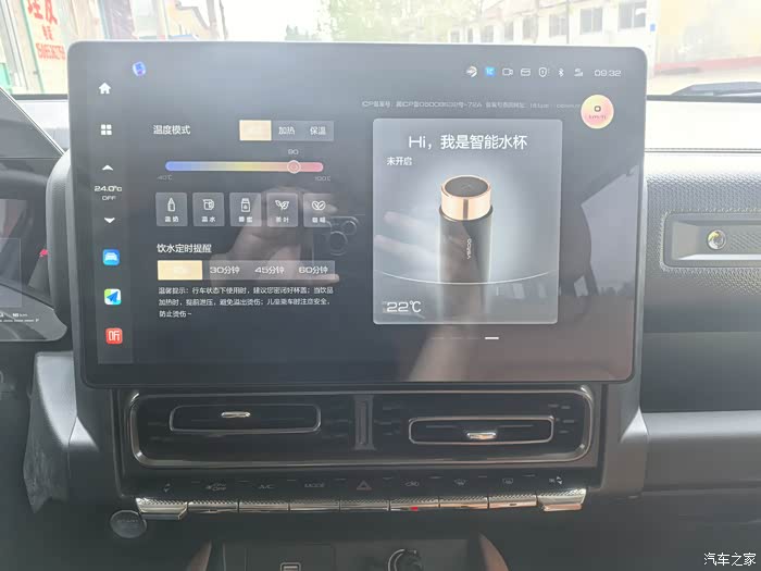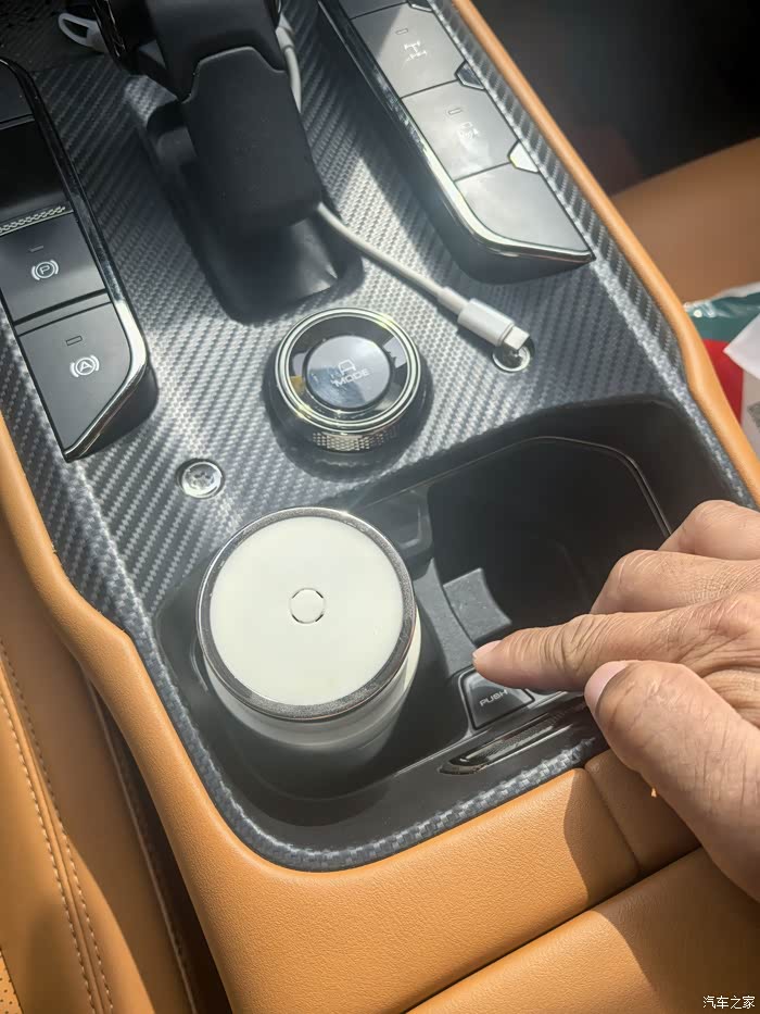 就是图中这个为咖电热水杯啦,咱哈弗猛龙的内饰设计本身就很有科技感和质感,这个电热水杯往杯架一放,毫无违和感,精致又实用。
