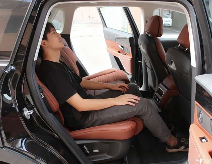 坐进车里之后感觉明显就不一样了,一长条弧形的贯穿屏加中控屏看起来挺有档次,甚至有点沉浸式的感觉,我估计这个屏年轻人会很喜欢(祛魅是不可能祛魅的),小朋友也喜欢,像我爸这种就难说了。不过坐进去之后是真舒服,尺寸参数具体多少我不知道,但是这个空间确实大。我180cm的身高坐在后排还很宽敞。而且后排还支持加热、通风、按摩,配置这一块确实还不错。虽然我大多时候都在驾驶位,但自驾出行中能让老婆孩子舒服,我觉得一切都值得了。