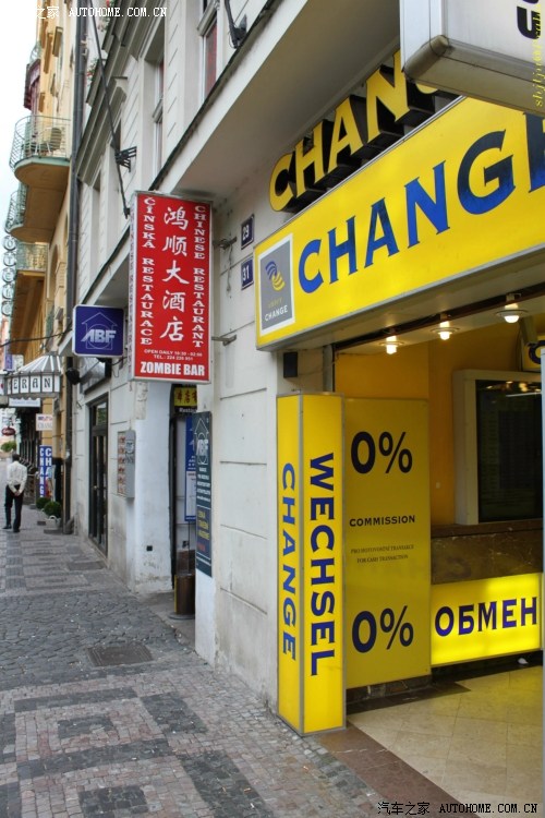 外币兑换,在旧城区有许多,但比国内兑换吃亏,国内1元兑3克朗,或1欧元兑30克朗,这边最多兑20克朗。