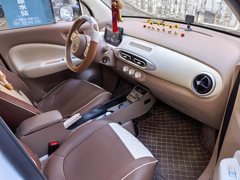 3. 500元装饰很值,加装的手扶箱能放手机、纸巾,还能当扶手,跑颠簸路不硌胳膊;皮质座椅坐着也比原车织物座椅舒服不少,孩子在上面蹭来蹭去也不怕脏。4S店送的脚垫贴合度还不错。