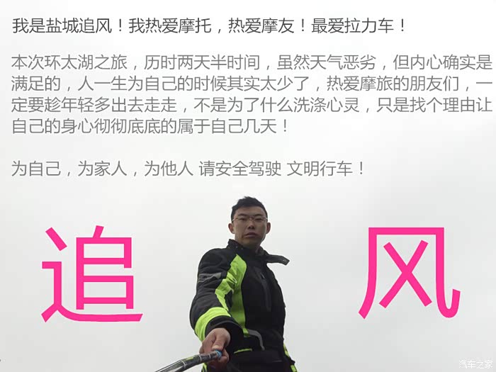2016年1月282930两天半时间!环太湖之旅!天气阴雨!里程一千公里!车辆宗申RX3黄色旗舰版!换完机油,正式开启环绕太湖之旅!出发罗!由于车子换了机油后出现顿挫,于是怀疑是不是机油加多了的缘故,没办法,只能路边放掉一点,有所改善,但还是顿挫!回家的路总是那么的亲切和温暖!http://v.youku.com/v_show/id_XMTQ2MjI0MDk4NA==.html?from=s1.8-1-1.2请选择高清模式观看!谢谢!