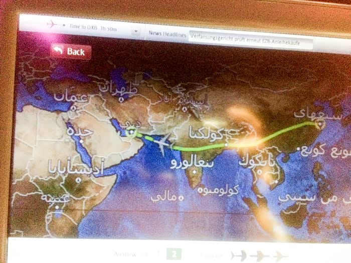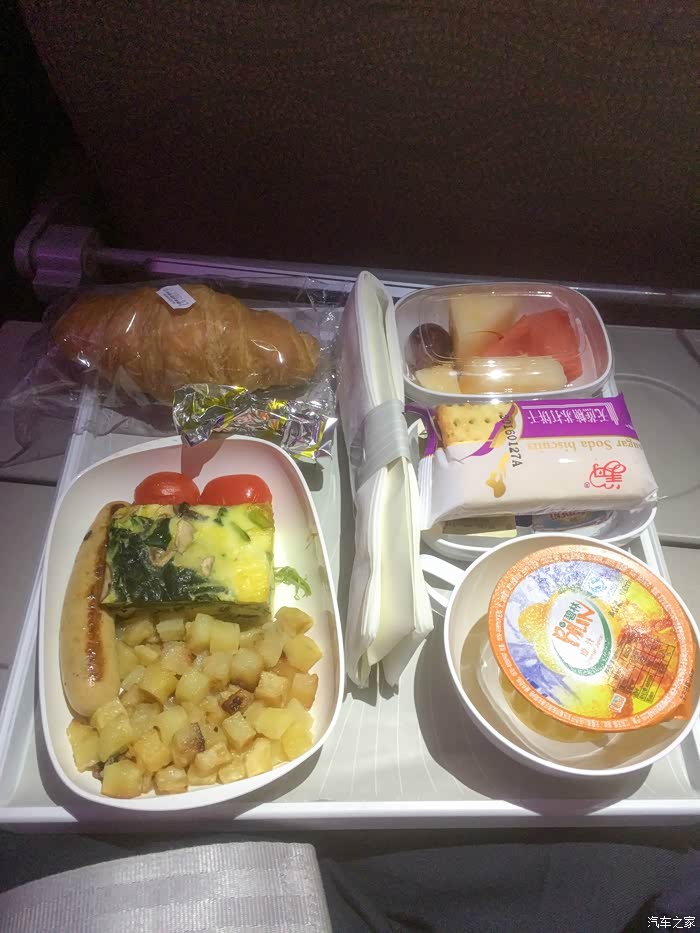 坐的是阿联酋航空A380,阿联酋的A380 位置也没比A340大多数,但是吃的航空餐和娱乐系统还是不错的,餐食可以提起预定,电影和电视剧种类也很多,也有中文的,但是不是很多,胜在更新还是蛮快,很多新的电影都有。