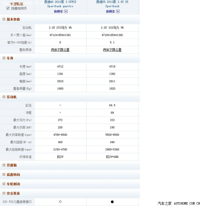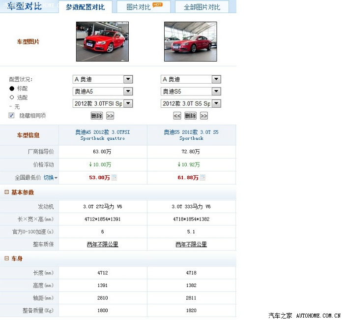 价格:增加98000元(折扣前:S5 72.8万 VS A5 63万)