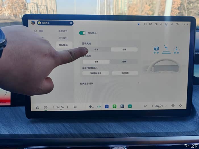 经过这段时间的用车感受我觉得抬头显还蛮实用的,可以一直看着前方不用低头就能看到很多信息,进一步提升安全驾驶,显示风格我的选择是标准然后模式就普通吧,毕竟大部分时间都在市区代步行驶很少去越野啥的