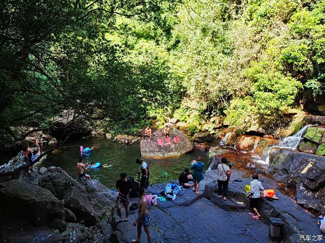 我走到这里的时候,水里已经泡了不少人,潭边的亭子里,还有专门卖游泳衣和救生圈的,看来这里夏日戏水之有名,由来已久。