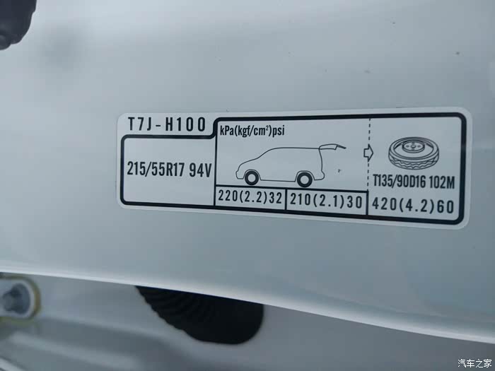 车厂气压推荐值通常可以在以下地方找到:车辆用户手册,驾驶室车门(B柱附近)旁边的标签,车辆驾驶座旁的抽屉,油箱盖小门。下图仅供参考: