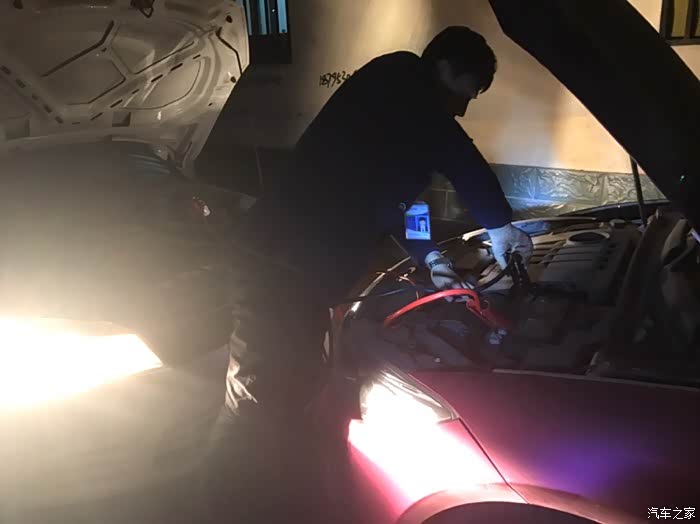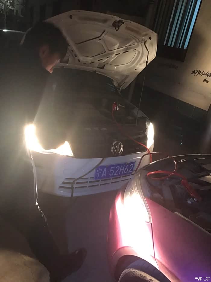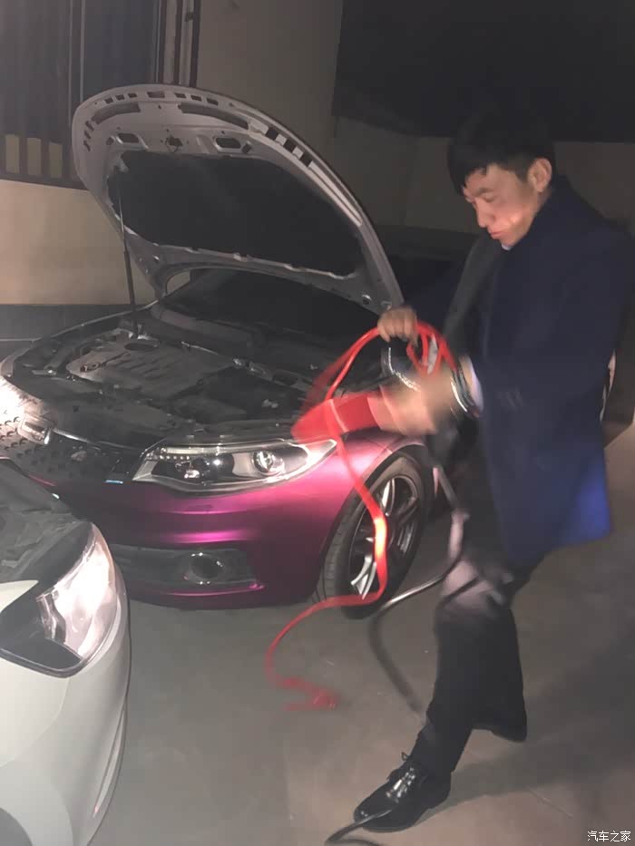 折腾了好一会,求救家里做客的几位姑父,推车。开了姑父的长城皮卡来对车,扭方向盘真心费劲啊。在此需要批评的是拖车师傅,车子发疯的时候,我让他电瓶线直接连接电瓶对车,并在拨打了观致专业技师经过确认没事的情况下,拖车师傅一意孤行,并且指责技师,说技师不懂电路,如果按照技师的方式连接电瓶烧坏让技师负责。我就一头的汗。在这里吐槽一下。拖车师傅为了保险起见,非要连在车架子上搭铁对电瓶,可是我的好师傅呐,你把对线夹在大灯的固定螺丝上,我就是把一键启动键到地底下也打不着呀!忍住不发作,继续对车吧。折腾了一个半小时,我的小脾气终于爆发了。大吼一声,给我直接对电瓶,烧了我自己负责。我勒个去。车子框架搭铁是可以对车的。问题在于找不到可以搭铁的部位,我也不懂哪个可以搭铁,姑父也不懂,满车机舱乱找寻。浪费时间啊,还是在零下十几度的气温里。按照我的方式直接连接两车电瓶,一下子车车就打着了,所以说没电了,求人不如求己啊。反正过程很让人恼火。吐槽一下,抒发一下内心的愤怒。最后还是跟师傅道谢让他回家过年去了。大过年的,麻烦人家也不好,虽然沟通困难,还是要感谢他。