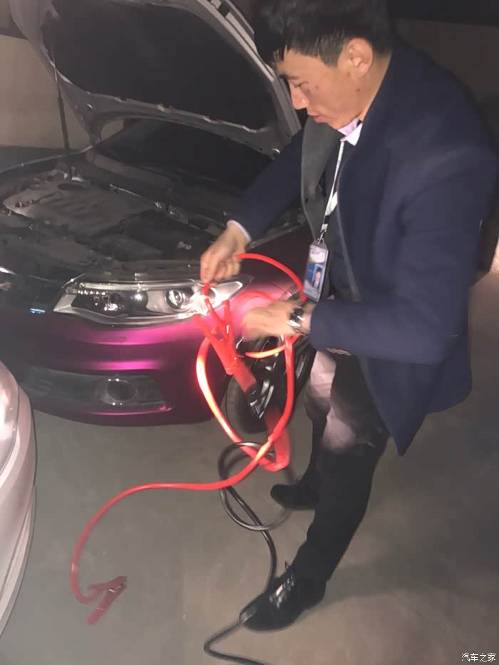 回到大年初二的事情上,打车的时候,已然指针各种提示在仪表盘发疯。一瞬间反应过来,没电了。车头却贴在墙根上,无计可施。这惨了,致电4s吧,因为过年都放假,也不好意思让人家大过年的来对电瓶,咨询过后,拨打了太平洋保险公司的电话,给我派了一位合作的拖车公司的拖车师傅携带充电宝对车来了。不幸的是,打不着
