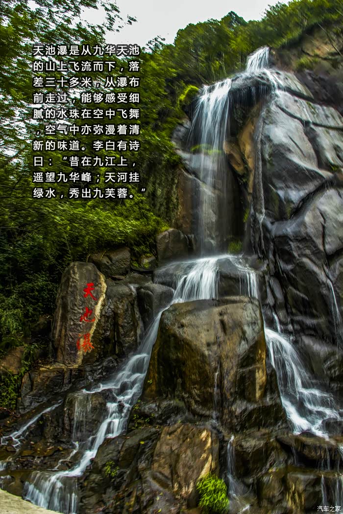 九华天池风景区位于池州市郊马衙,在神奇的北纬30°线上,是国家生态旅游示范区、国家水利风景区、国家AAAA级旅游景区、安徽省首批风景名胜区、安徽省首批森林旅游示范景区。景区自然生态原始,景观奇特,既有峡谷、溪流、飞瀑、竹海、奇树怪石、高山平湖、冰川漂砾等自然景观,也有红色山村、水电站、茶园、古香作坊、皖南民俗馆等人文景观。幽深的树林,清新的空气,静态的巨石,动态的瀑布飞流而下,形成了“天河挂绿水”的奇观,被誉为江南的“阿里山”。