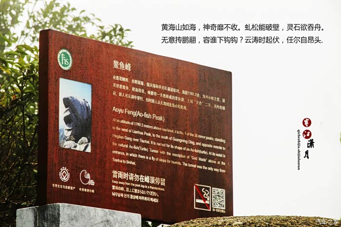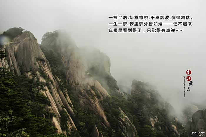 驱车回家的路上,打开收音机,听到了中国最美女中音降央卓玛所唱的这首歌。低沉委婉的的声音如泣如诉,唱出了六世达赖仓央嘉措心底的唯美柔情和对“世间安得双全法,不负如来不负卿”的感叹。乐曲声调的起伏,让我的心也疼疼的。这是人们常说的共鸣么?想起前段时间去黄山的图片还未整理,嗯~~是要整理一下了。尽管佛说轮回:万物于镜中空相,终诸相无相。我依然希冀从那缭绕的云雾中,找到我的“一世轮回”;也希冀,车友们从中能够获得些许有关黄山游的知识与经验... ...