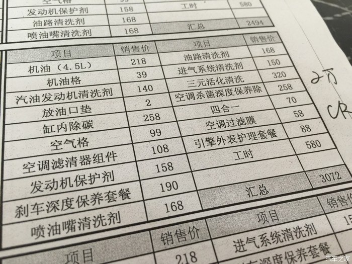 这是4s建议做的 全是没必要的清洗 根本没用也不需要 一共三千多
