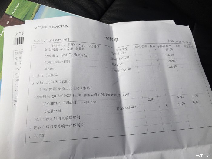 这是我自己要求做的 空滤因为自己刚换过就没要求他们换 一共是六百多 以后各位去保养一定要长点心
