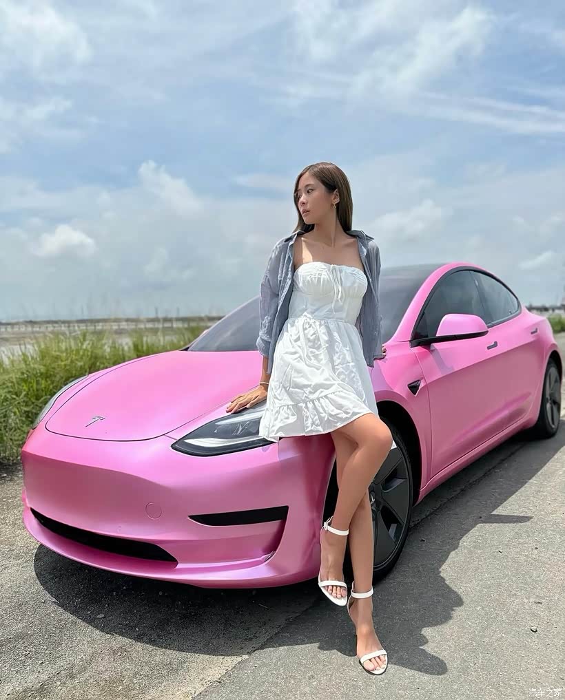不过幸好一位华人特斯拉车友帮助我们了不少。据他说美国特斯拉二手车价特别低,充电等也非常方便。给老婆这次就买了一辆粉色贴膜的Model3。