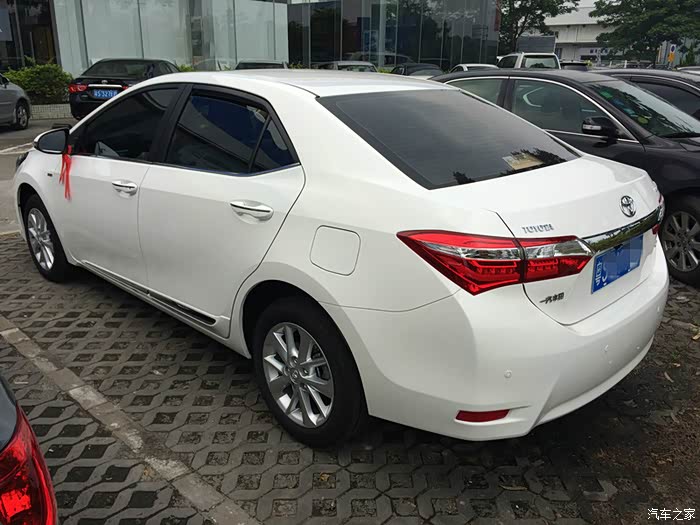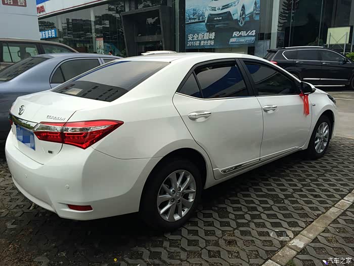 好了,说到这,小卡也该登场了。不可否认,我对日系车是情有独钟的,只因身在广东吧,保有量特别大。话说我与小卡的邂逅跟绝大多数人一样,就是在2014巴西世界杯期间,每天被古天乐那条“我,就是卡罗拉”的广告密集轰炸开始关注的。当时还不以为然,因为我的注意力全在福克斯身上,这也难怪,因为去年上半年的东莞,满大街的小福,那出镜率也太高了,舍它其谁呢?直到2015年春节过后四月份开始,伴随着卡罗拉给力的优惠幅度及与日俱增的良好口碑,卡罗拉的销量呈现井喷,在全国汽车销量排行榜上一路追击朗逸、轩逸,更是在六月和七月夺魁傲视群雄!在这些华丽的数据背后,不是单纯的厂商让利就能实现的,因此当时,我便成天泡在之家的卡罗拉论坛里寻找答案,因为,这里有无数老车主、现车主、准车主、潜车主不分昼夜的客观的信息汇总和无私的使用感受分享,让我受益匪浅,在此我由衷感谢之家论坛给我提供了太多宝贵的借鉴。没错,我的天平已完全倾向小卡了,小福的后排空间完败了,后期保养成本也现短板了,还有那套我耿耿于怀的4AT变速箱....至于朗动和K3,我曾经也心动过,但有朋友倒苦水(一位瑞纳车主,一位ix35车主),韩系车做工粗糙,售后时而狗血,操控一般,我也只能过滤掉了。幸运的是,我身边有一位资深高参,在二手车市摸爬滚打十余载阅车无数的老爸,他力挺卡罗拉。