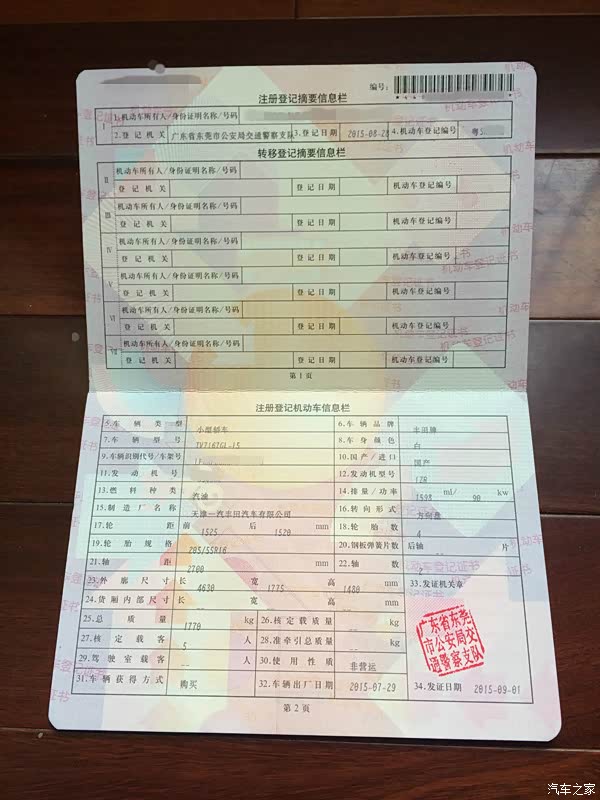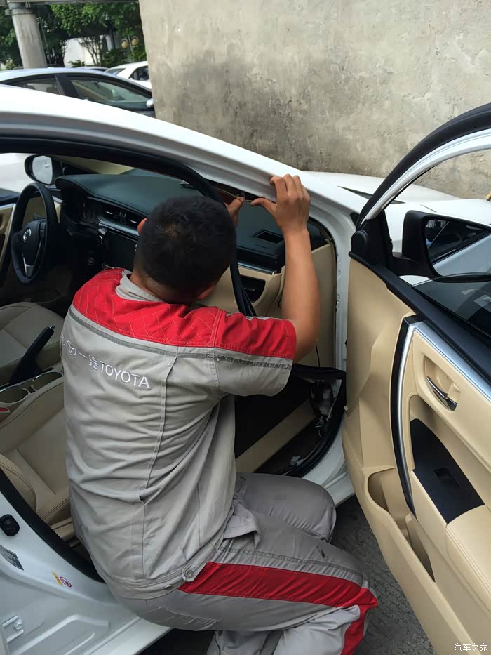 2015年8月15号我与朋友来到4S店,恰逢当天是日本投降七十周年,4S店有一场团购会。在与销售展开一轮唇枪舌战,并经历一轮跌宕起伏的心里搏斗之后,我终于下了决心——订车!得知贷款需要3千手续费,我毅然选择全款!哥就是要任性一回!至于选色方面,我钟情白外已久,内饰征求了家庭成员的意见后,选择温馨的米内。就这样,我与销售签订合同,交了1万定金就走人。当天促使我订车还有一个因素,正是发生在8月12号的天津港大爆炸,距离事发地点三公里外的一汽丰田组装车间也受波及了,当时大伙都担心受损车会不会被流入市场(为后来一汽丰田公开受损车辆车架号并承诺不出厂的决策点赞),而4S店又正好有现车,我才果断下订。三天后,我就带着媳妇女儿去验车,并刷了尾款(当时我才晓得,信用卡是不支持购车这种大宗交易的,刷不了!坑!) 之后又过了一星期,十选一敲定牌号(由于是与销售电话里头进行选号,中间因信号不好差点没选上,飙冷汗...),9月5号销售通知牌照已到,老妈翻黄历挑了个好日子,于是9月8号就带上老妈一起去提车。由于提车当天碰巧那位4S销售休息,他特意赶过来帮我办手续,我有点过意不去呢,既no仪式也no拉炮,正合我意,哥素来低调。