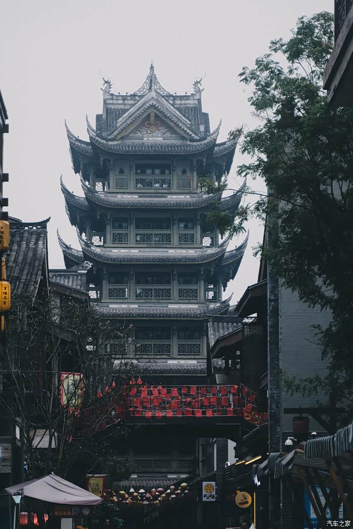 里面有很多重庆特色食物,这里有一座塔楼,位于小镇最高处,可以慢慢爬上去登高望远,看看美丽的江景和古色的建筑。用于装饰的各种油伞,灯笼,喜气洋洋,拍照好看的很!