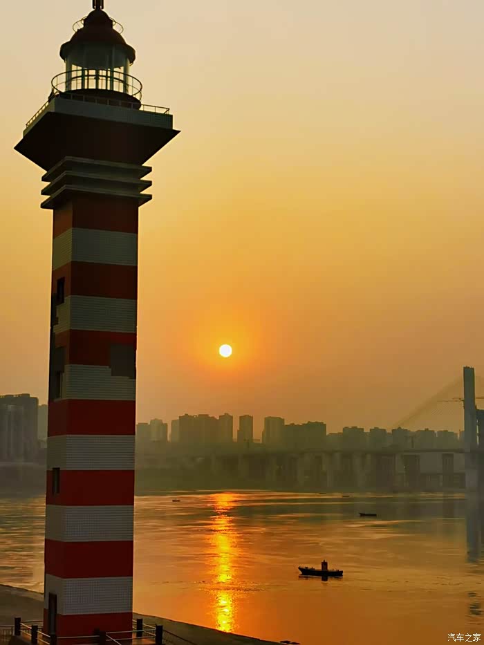 谁说灯塔只有在海边才有,今天就带大家看看江边的灯塔,假装自己在海边!对面工厂的两个大烟囱和它比邻,更是一副难得的画面!