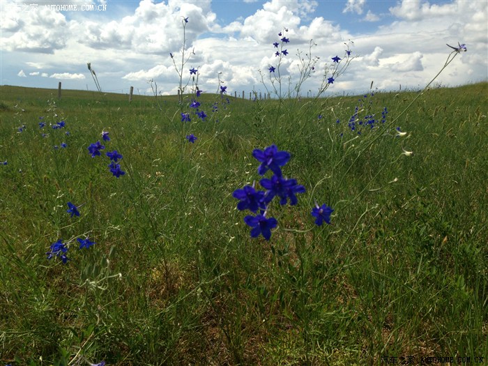 看到草原里不远处有一个敖包,开进去看看,拍到了蓝色的小花。