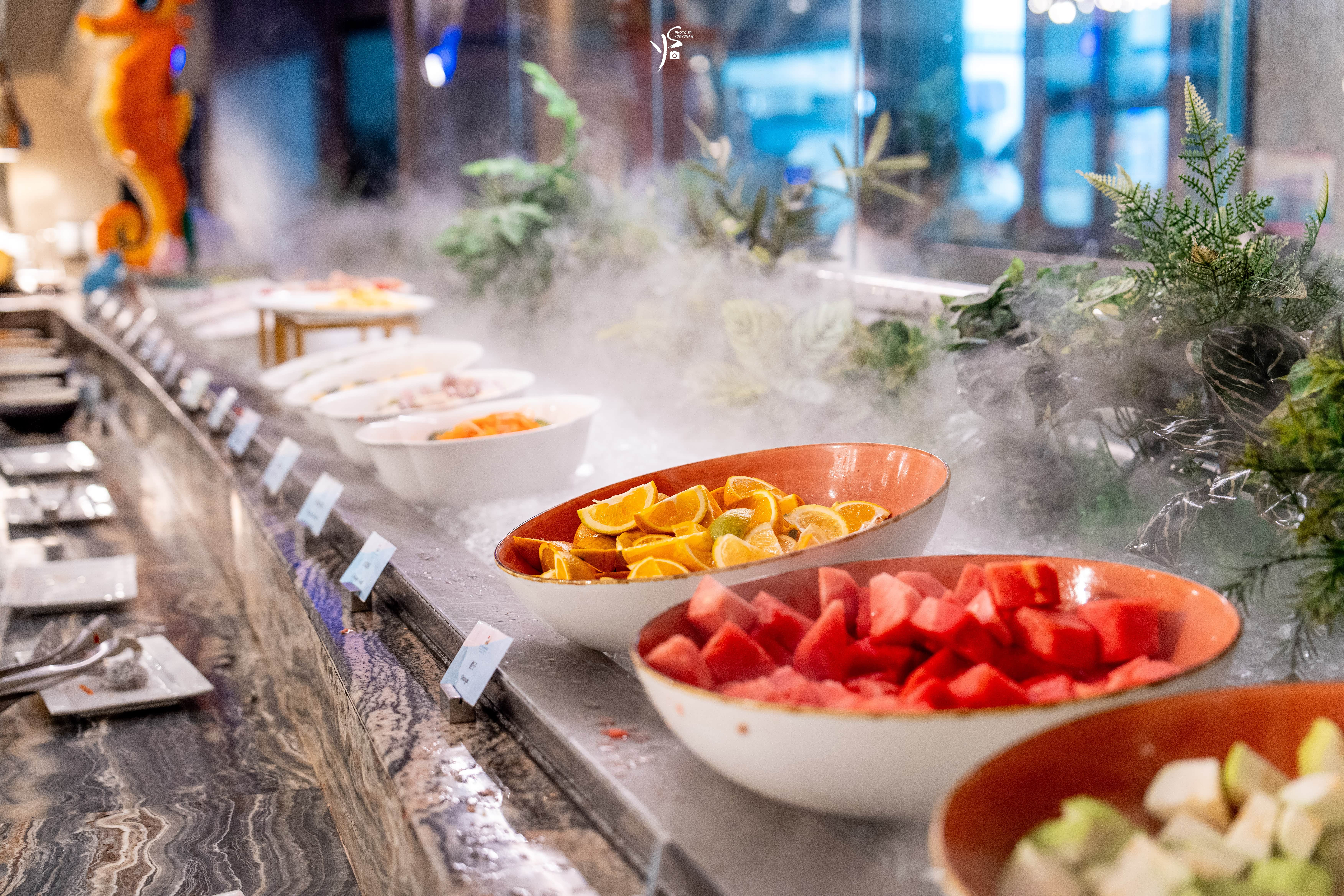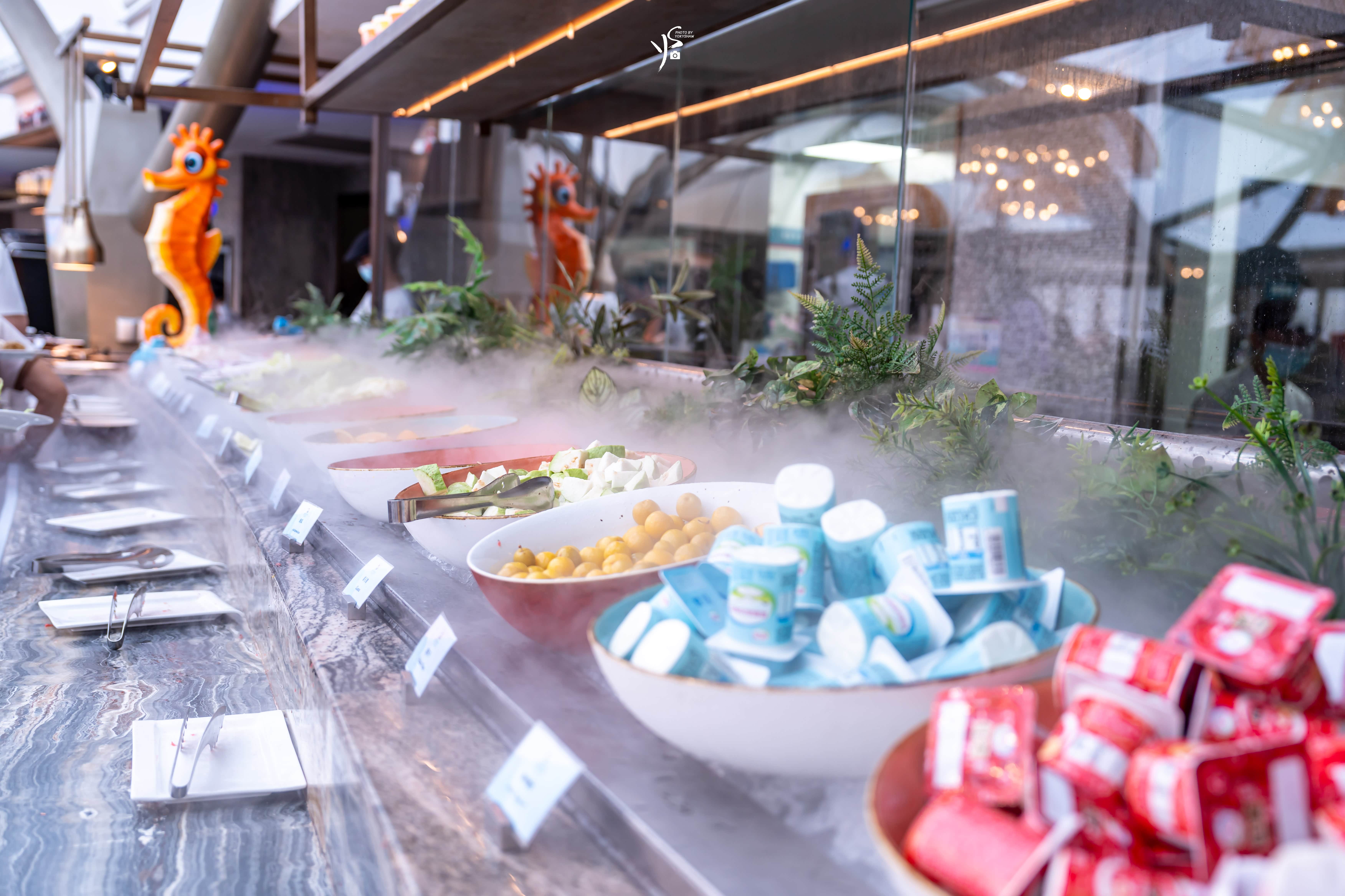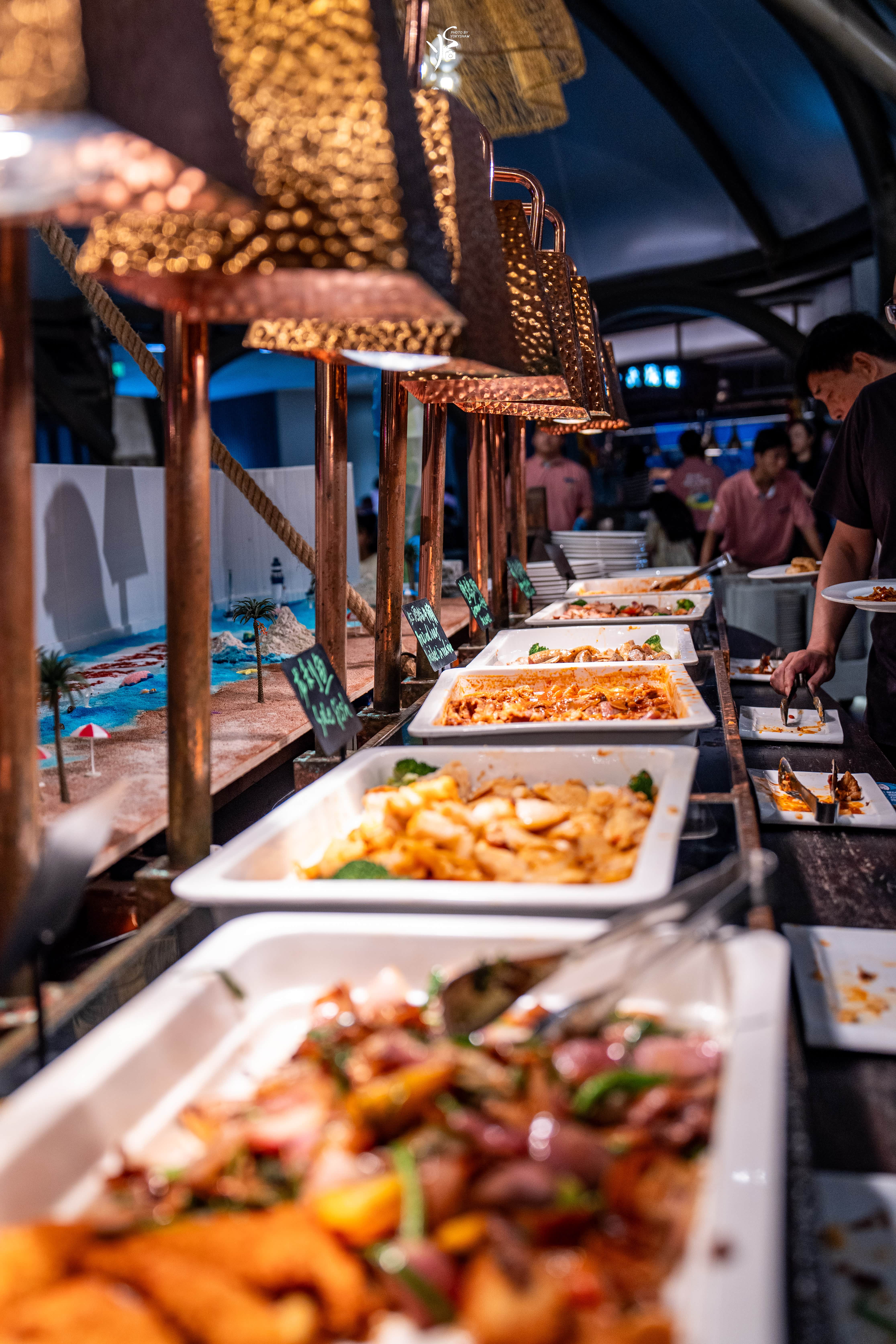 最终因为雨实在太大了,所以后面的部分项目都没玩完就溜了。回房间修正完我们就来吃今晚的自助晚餐啦~
