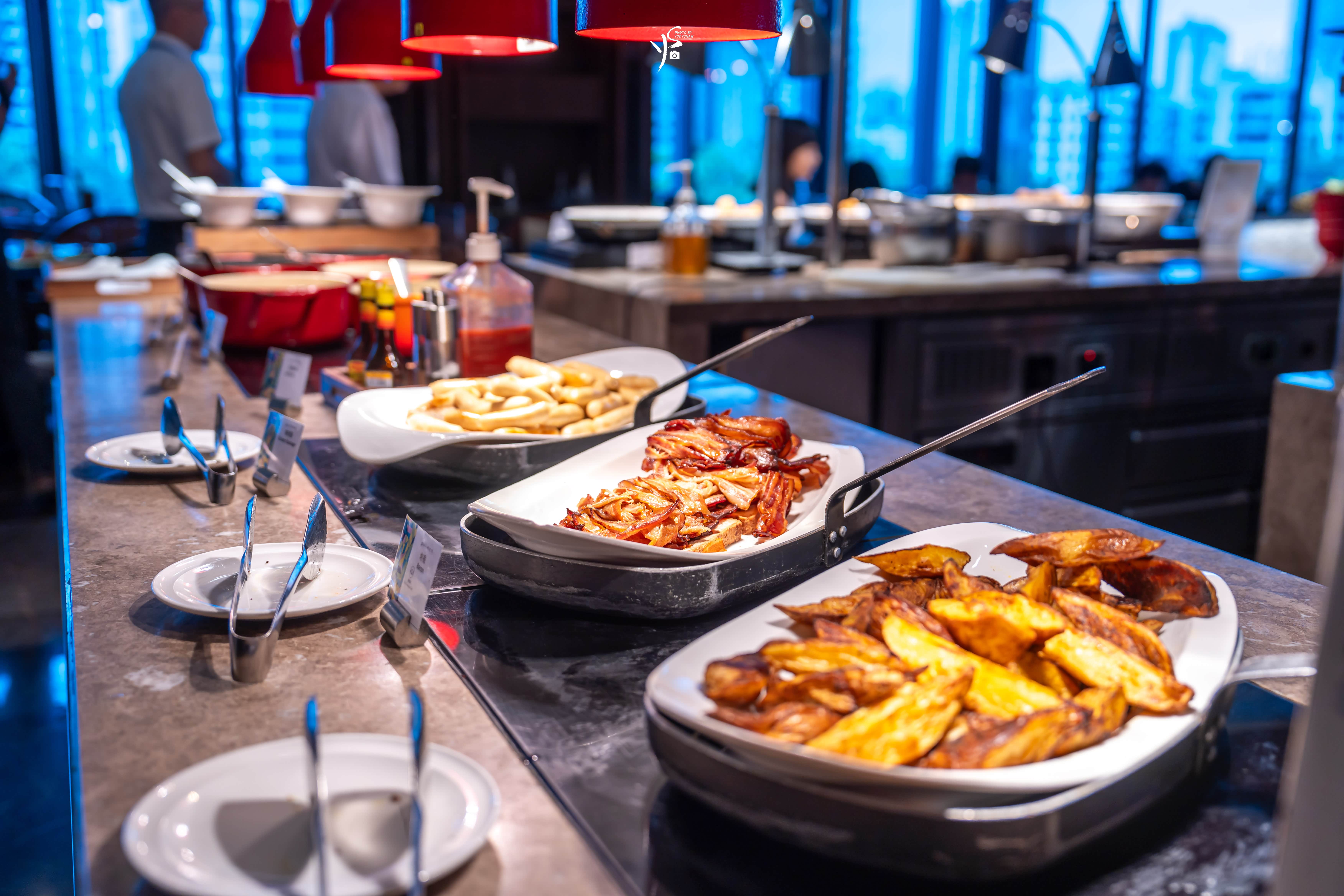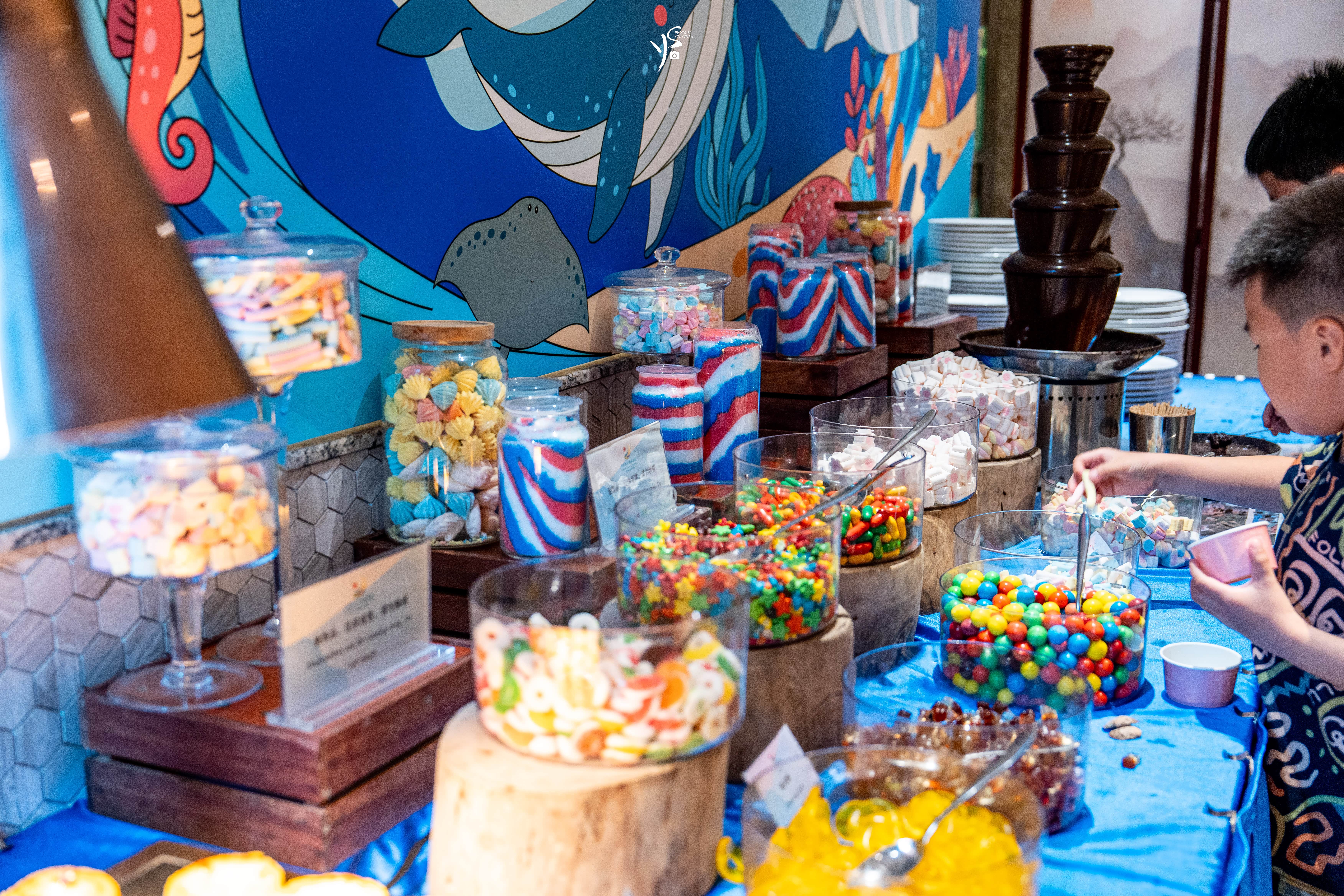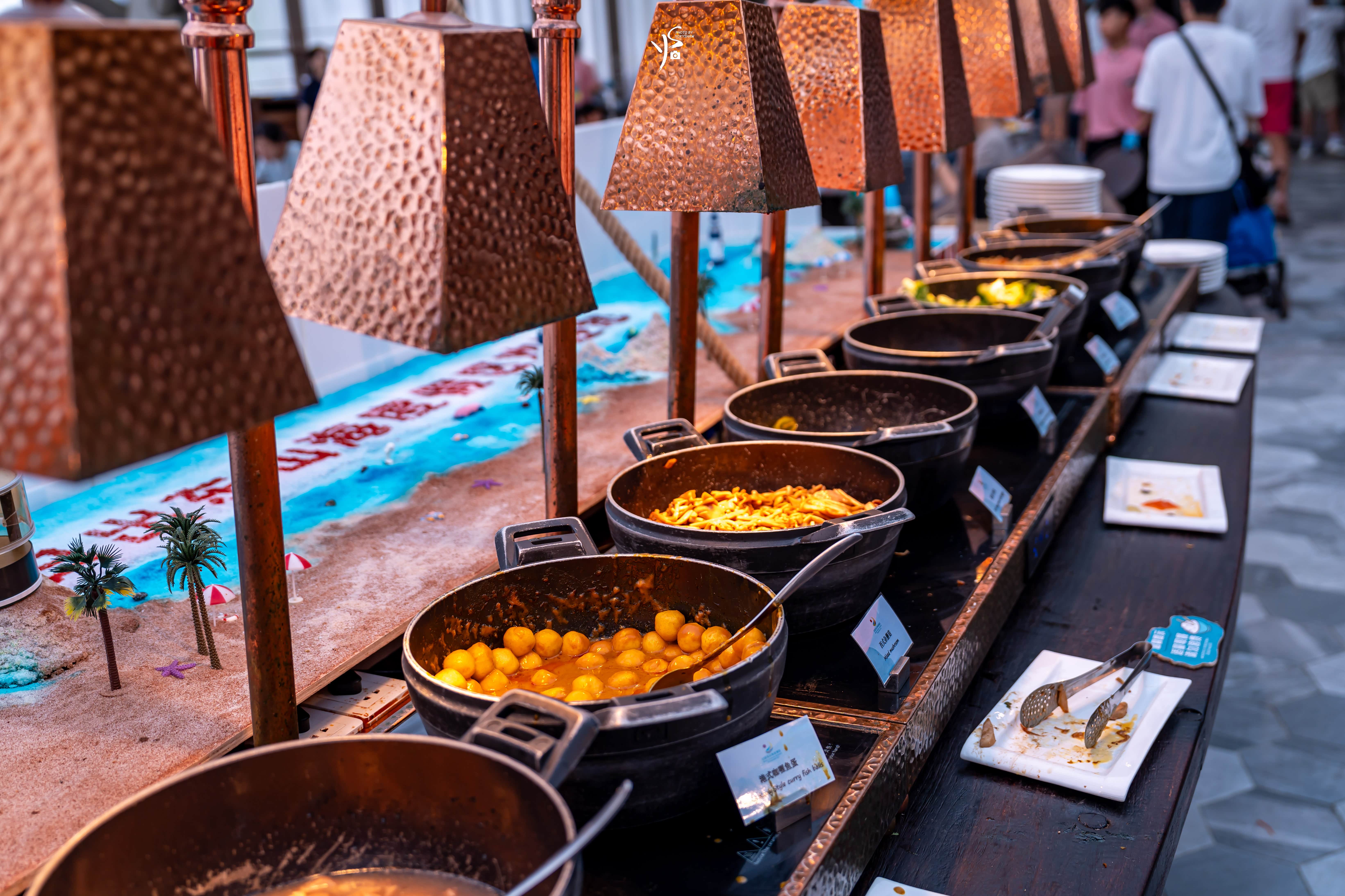 最终因为雨实在太大了,所以后面的部分项目都没玩完就溜了。回房间修正完我们就来吃今晚的自助晚餐啦~