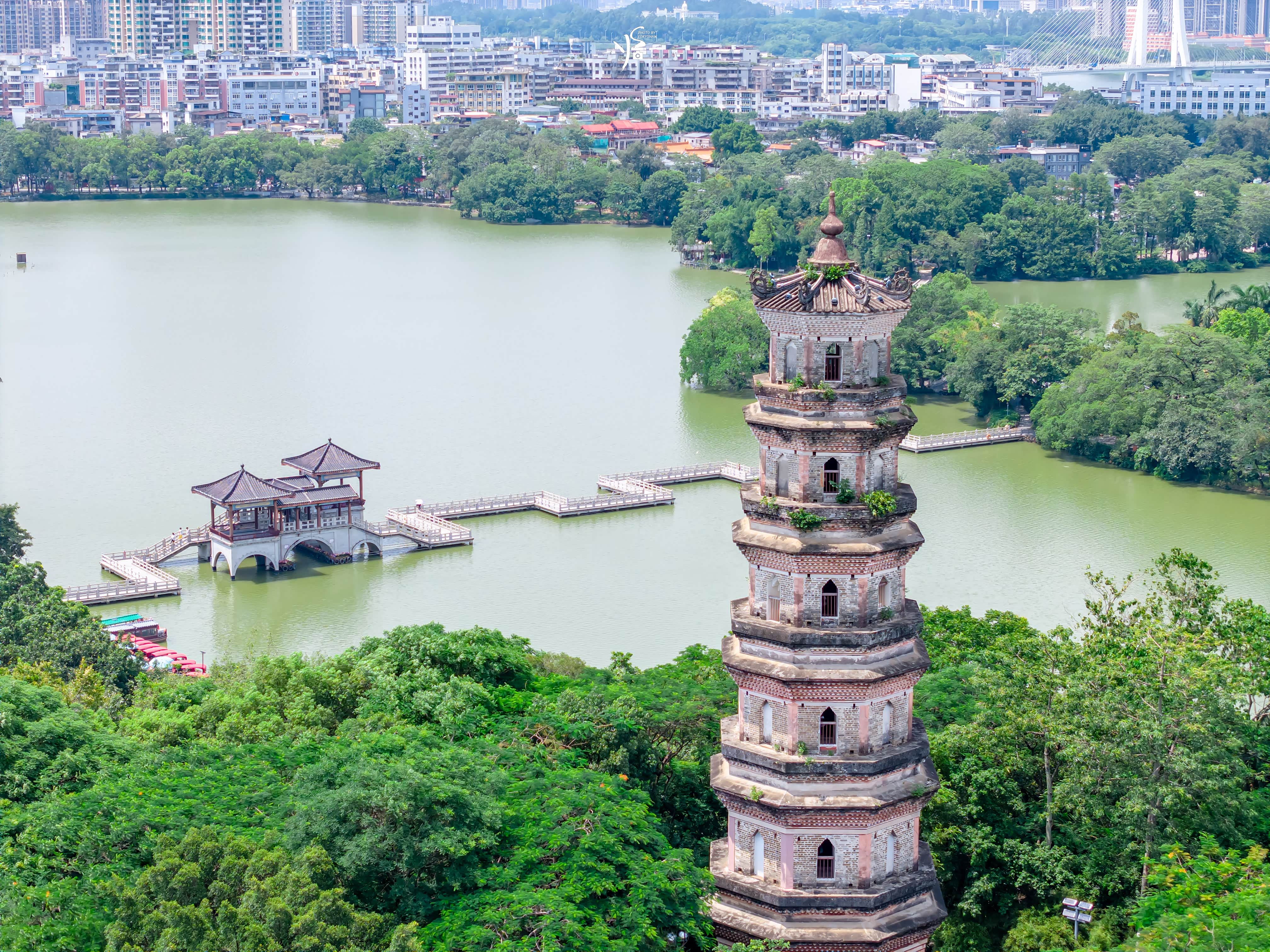 漫步在惠州西湖里,听着鸟叫与蝉鸣,欣赏着荷花,也很是惬意。惠州西湖总占地面积20.91平方公里,景色也可以媲美杭州西湖,其中九曲桥和泗州塔也尤为突出。