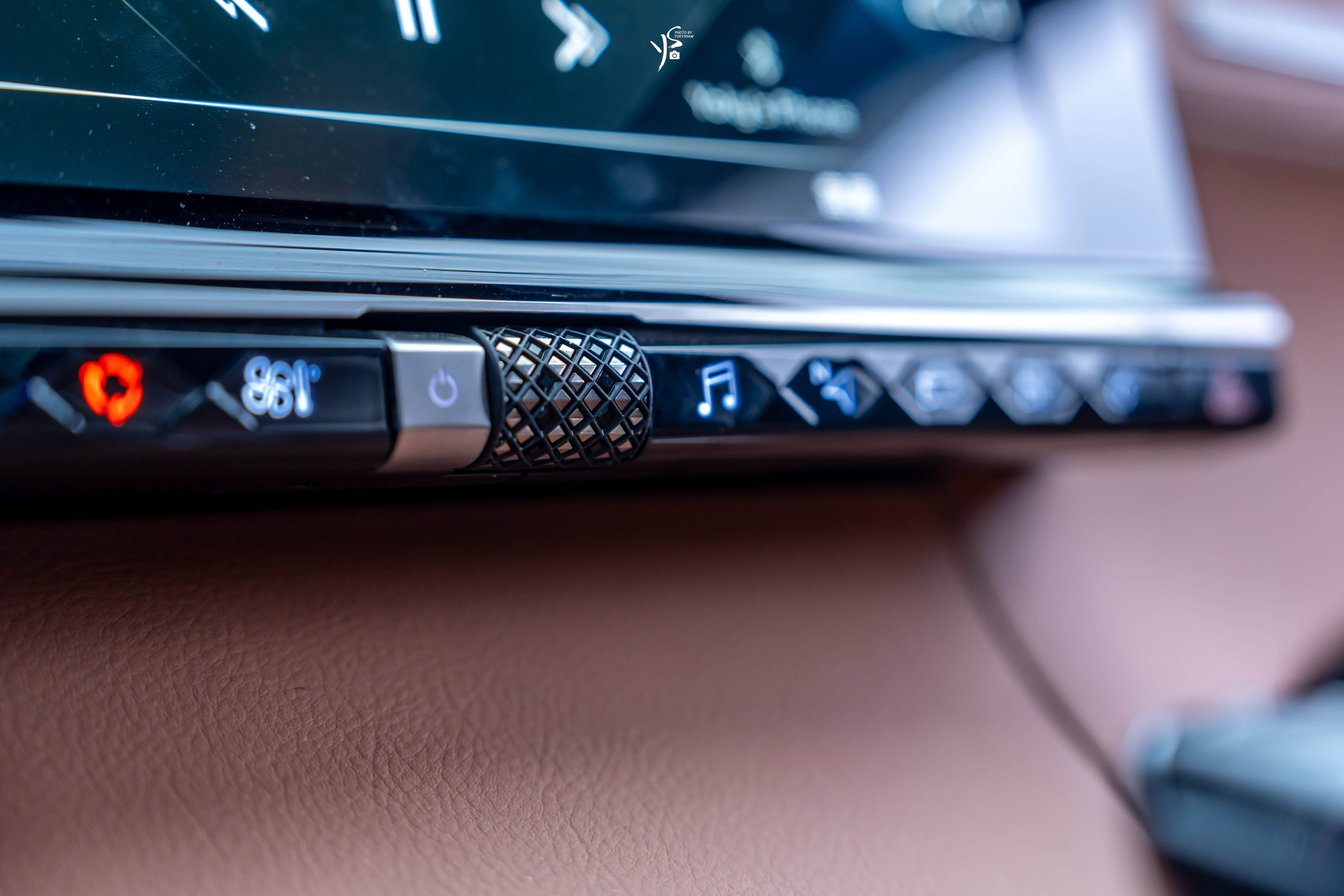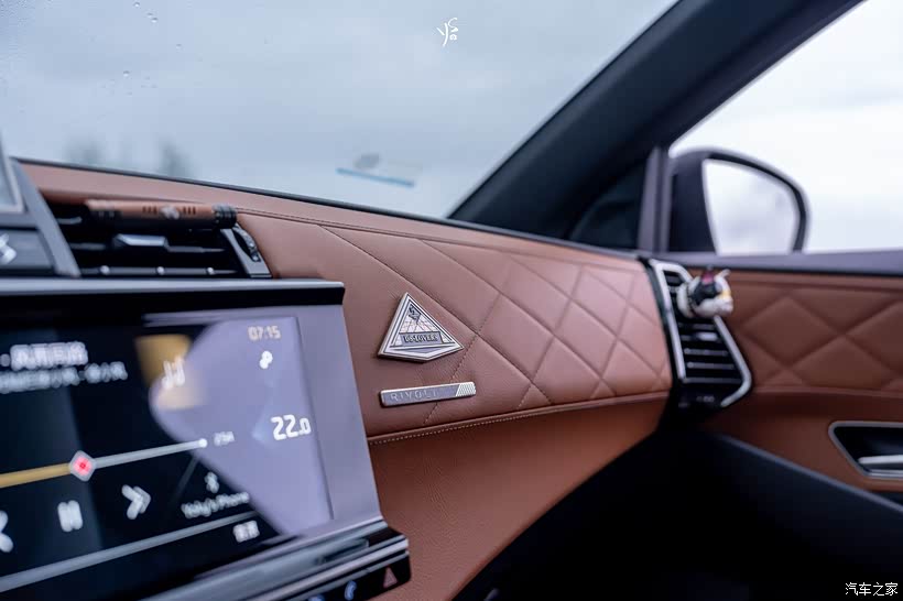 当时车内的配色有黑色和黄黑可选,确实这个黄黑的配色会更加年轻也更有视觉冲击感。外加全车的菱形线条包括皮革上的菱形缝线设计,以及中控屏下方的触摸按键和车窗的升降键都是有菱形元素。