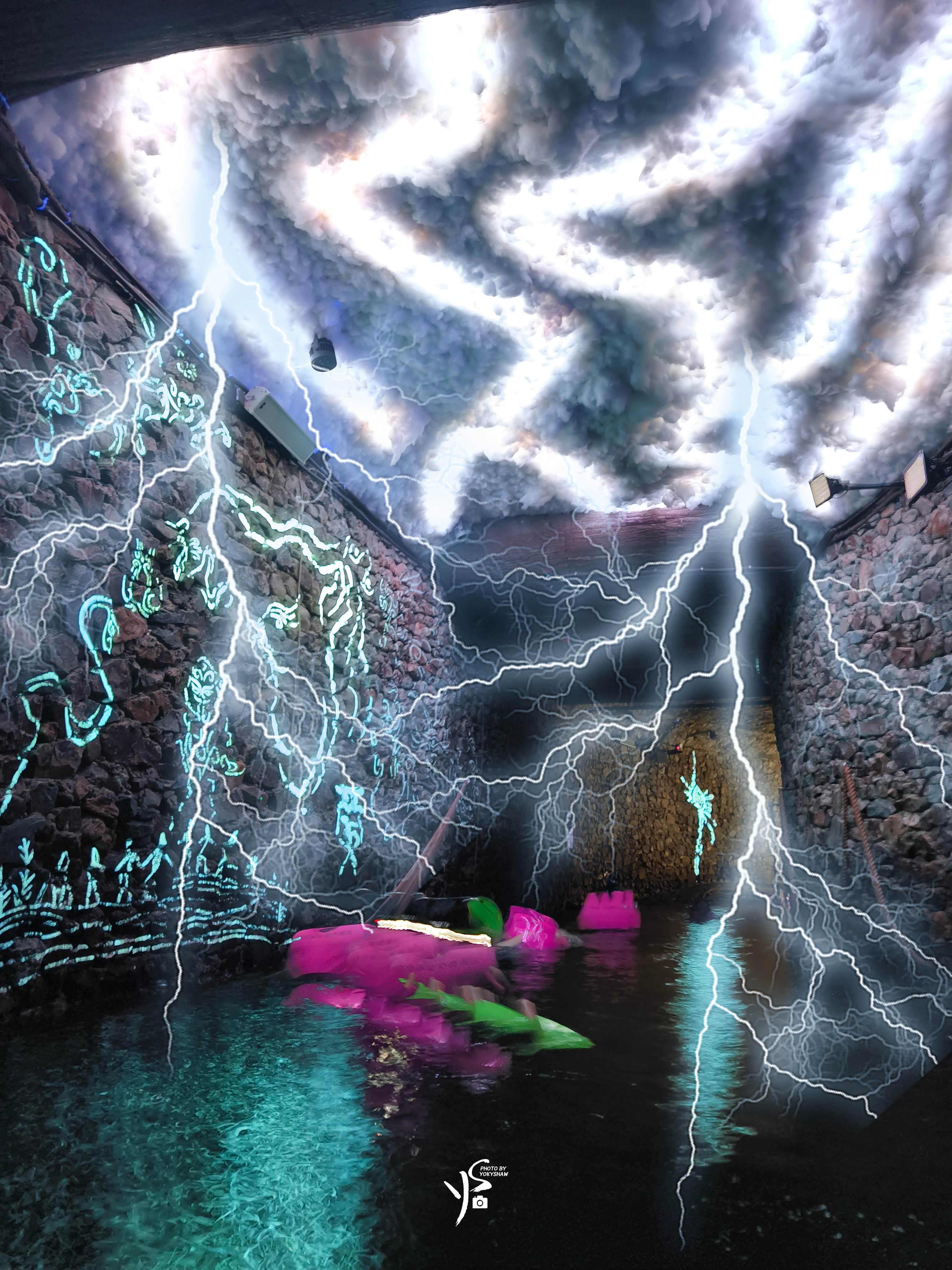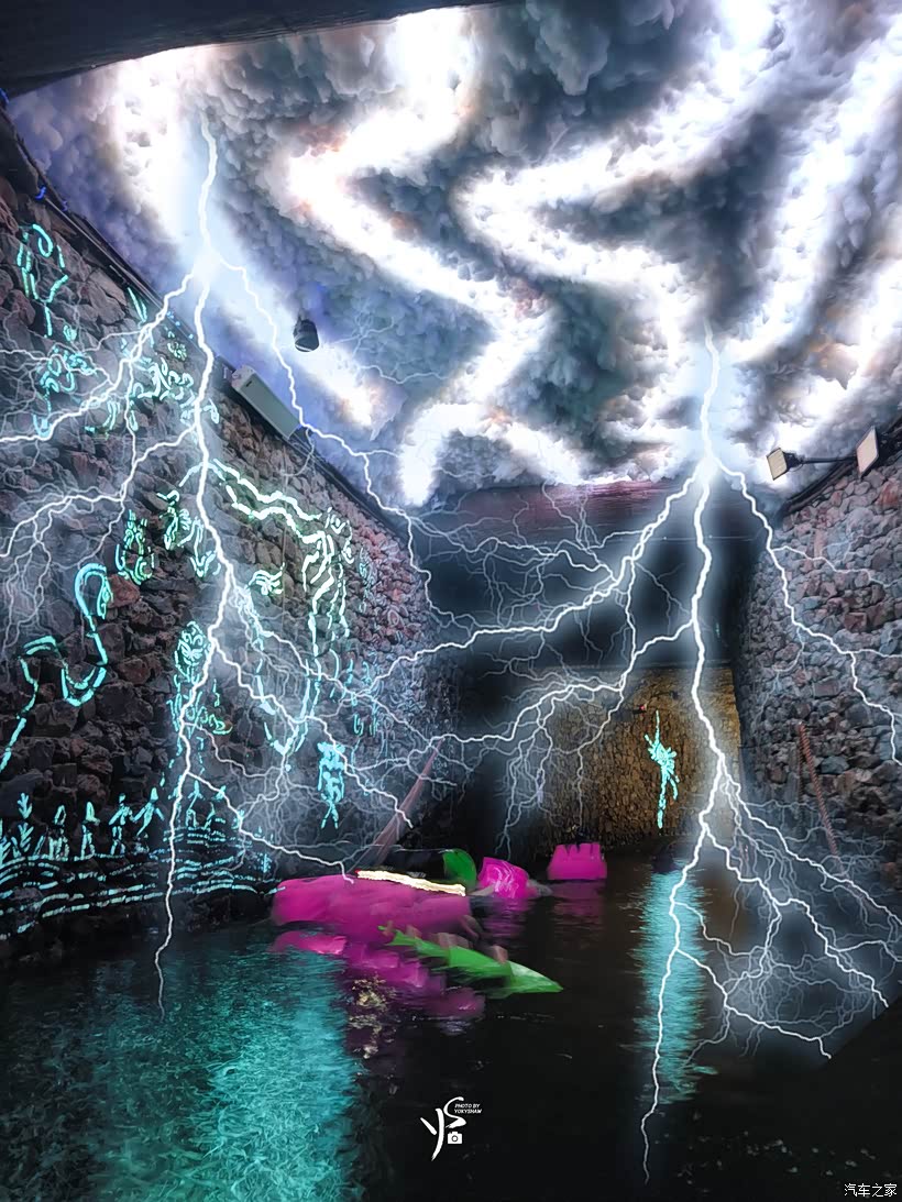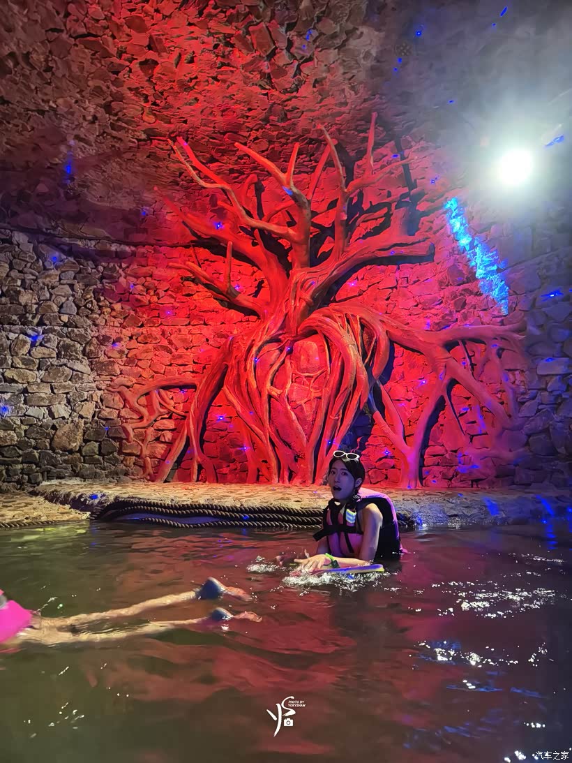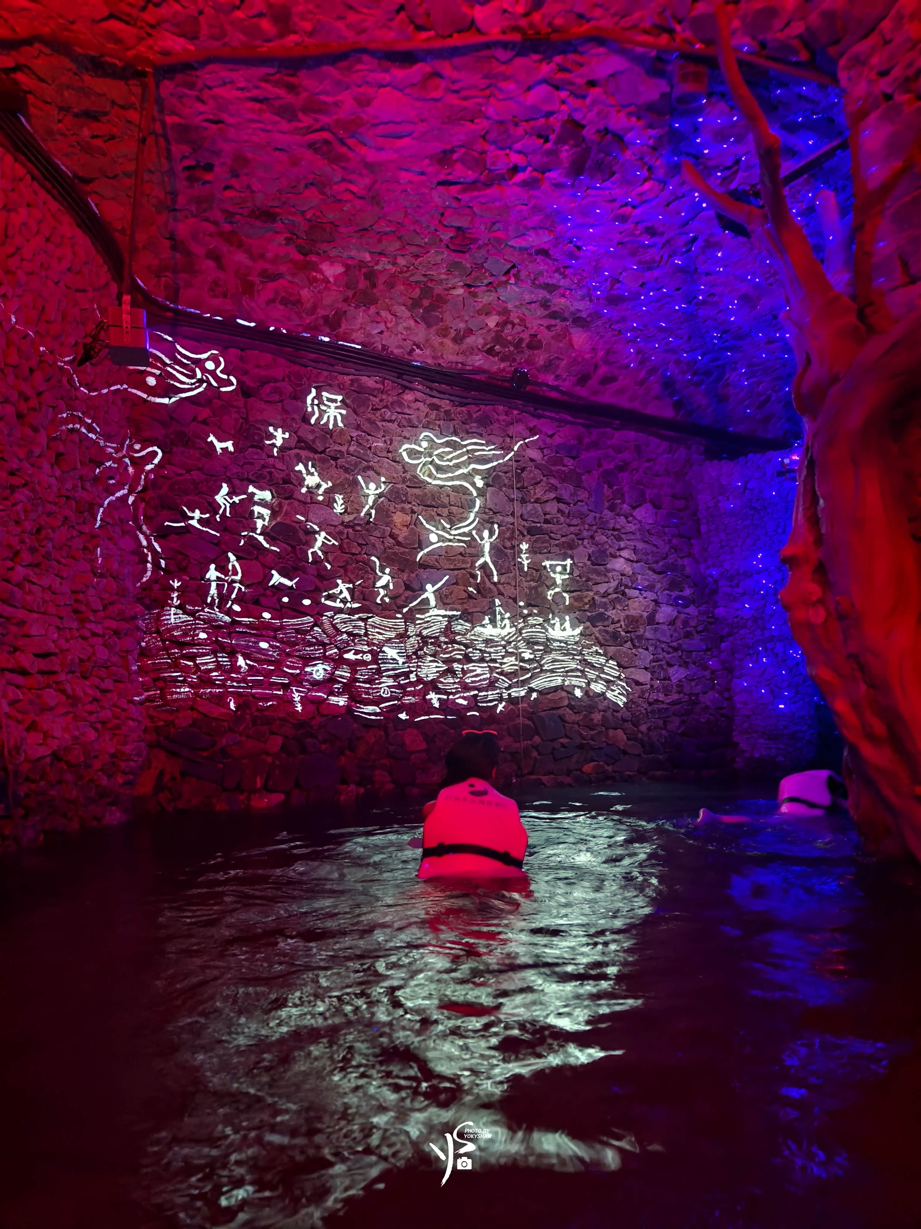 不过我们此次来是想体验它们的新项目:礁石地下河探险,这里各式各样的探险实在太好玩了,神秘的图腾,梦幻的星河,电闪雷鸣的地下河,以及地底下极光,还有埋藏在地底的心脏等等,给个忠告,最好是懂点水性,不然就会像我老婆这个旱鸭子,一路艰难前行。