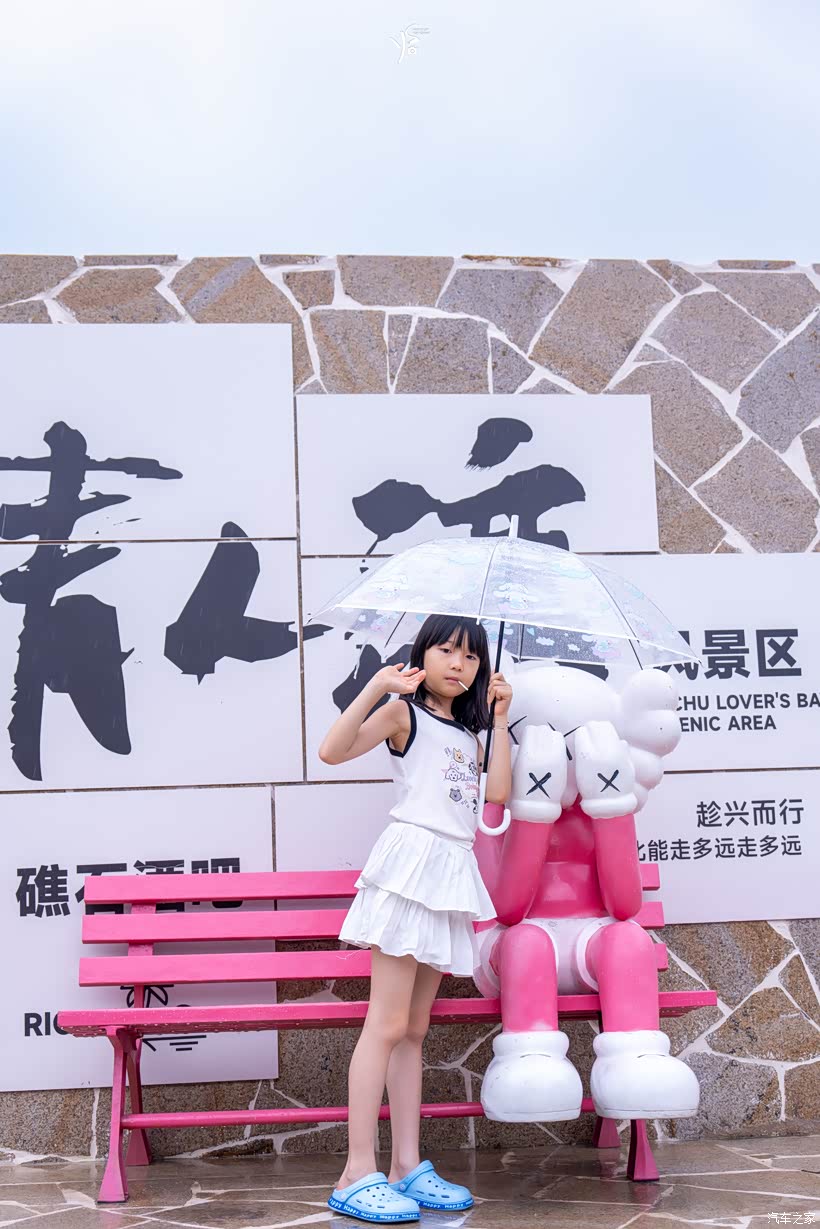 朝京门结束后,我们驱车2个小时来到了惠州双月湾,我女儿心心念念的海边也终于到了。只可惜今天的天公不作美。下起了雨,甚至电视和短信都提示有红色暴雨,奈何既然来都来了的原则,感受一下雨天的海边是怎样的吧。