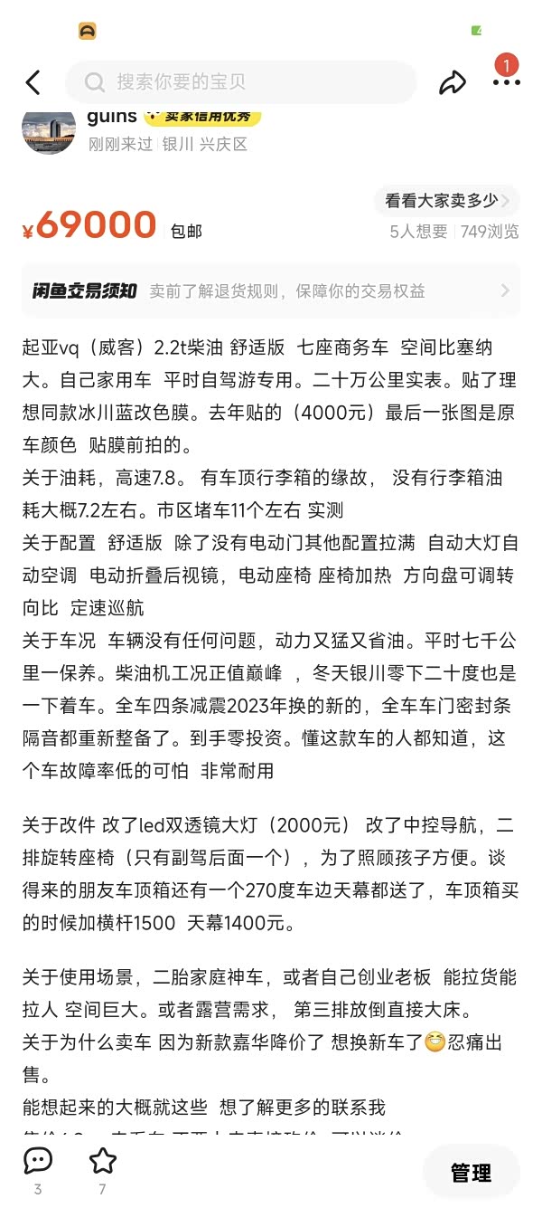 出一辆自用柴油vq舒适版 想换新嘉华了 价格可以谈