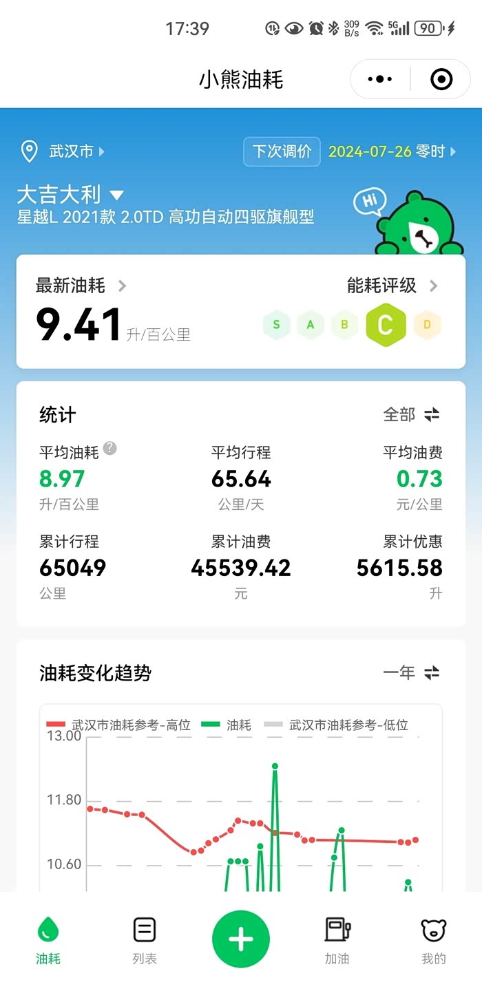 我的市区1公里1块钱,不用纠结加95的油,加满也就多30块左右