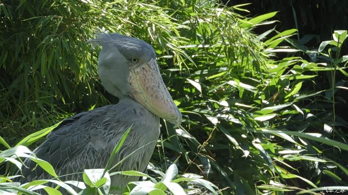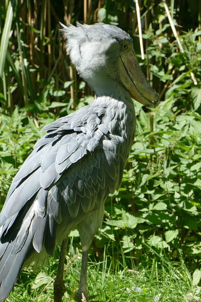 鲸头鹳是一种像鹳的鸟类,体型高大,平均有1.2米高,体重4000-7000克,翼展达到2.6米。大小似白鹳,头尤其巨大,也是现存头最大的鸟。长有一张非常有趣、可爱的面部。它那巨大、斑驳的喙部使其显得更具魅力。巨大鸟喙看起来就像一个鲸鱼的头部,眼睛位于头部的前端,和猫头鹰的眼睛长在同一平面上。喙宽大而粗壮,是世界上最宽鸟喙,宽12厘米,嘴端下弯成勾状,鸟喙的作用非同小可,不仅尖端尖锐异常,而且周边也像快刀般的锋利,能够穿透鳄鱼厚厚的皮肤,并且上下两片如此夹紧猎物,就像一个工件被夹在钳工的老虎钳上。