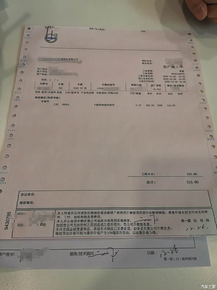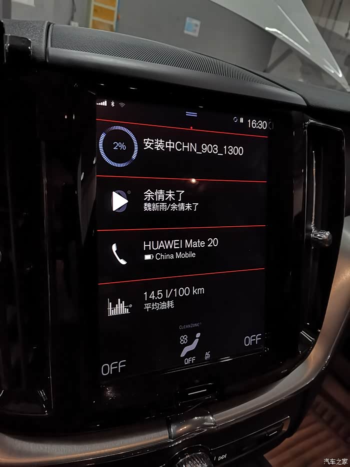 【开通小结】总体来说,过程比较简单:一是修理技师外接电瓶供电,以防安装车载导航过程中电瓶亏损;二是从沃尔沃官方后台购买软件,通过有线或无线(我这次看到4S店是用有线连接的)连接到车辆系统安装;三是在中央扶手箱的U口上插上U盘安装地图,听修理技师介绍,U盘是128G的,首次安装地图很大,以后可以到4S店终身免费升级,也可以自己到沃尔沃官网下载地图到U盘,自己更新。