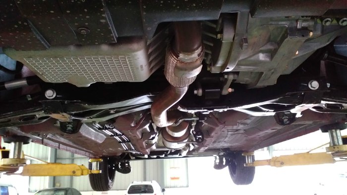 6,顶起来查看底盘,底盘应该是没有任何刮痕。同时检查变速箱有无漏油和渗油。