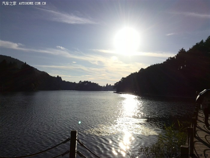 5日6:30,老婆说要上庐山,我虽然是第三次上庐山了,但为了老婆高兴,只得说上就上。从九江上庐山应该从北山比较近,但由于导航的原因,把我导到了南山,没办法只好走“反革命”路线。上山389道弯,科雷傲轻松加速,超车完全无压力。上山运气不错,车不多,走的很顺畅,且上山时在换乘中心还带了一个太极宾馆(三星)的服务员,既给我们当向导,又解决了住宿的问题(300元/间。停好车,我们立即上了景区观光车(80元/人,管7天),由于想看日落,故游西线:花经-天桥-险峰-仙人洞-大天池-龙首崖-卧龙松-悬索桥-石门涧-坐索道(30元/人)到电站大坝,坐光车到花经,再次到险峰看晚霞。