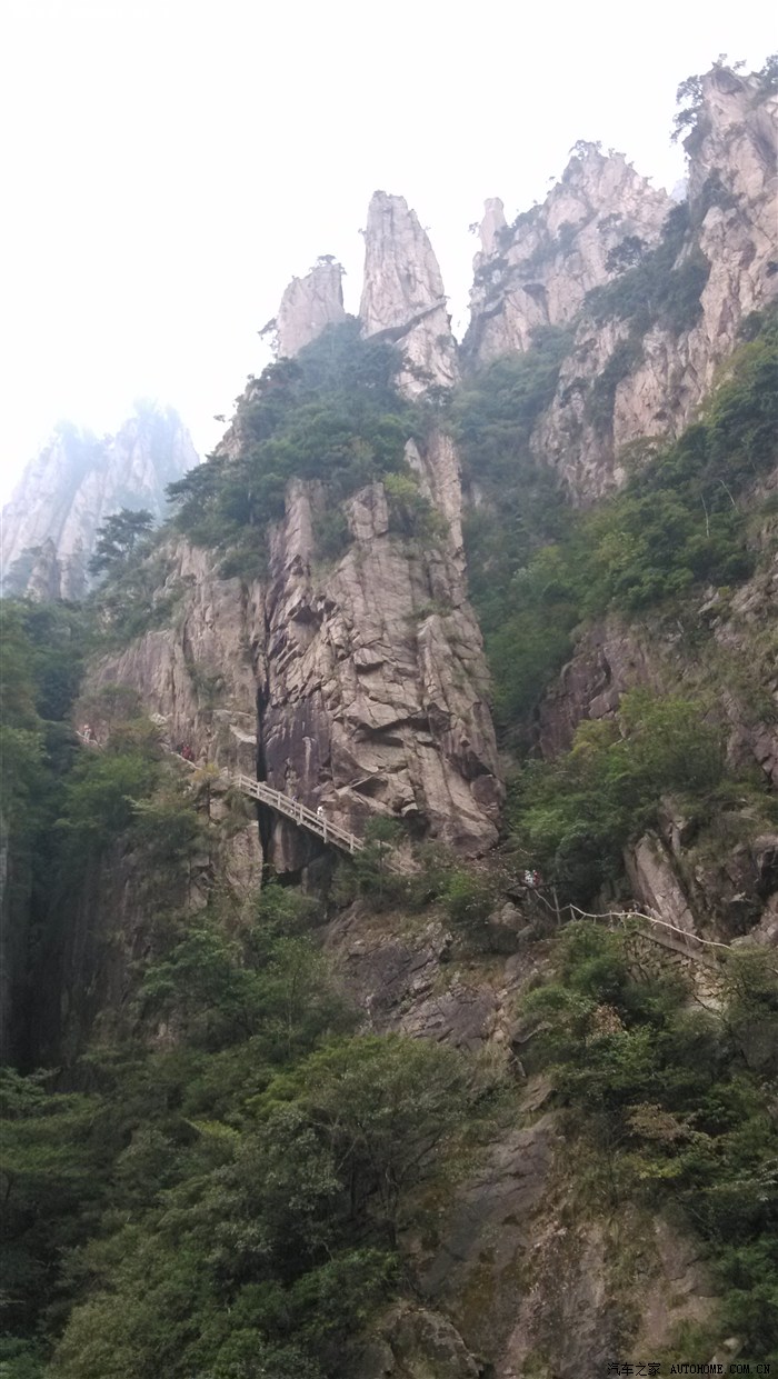 看完日出,由于往东线的车比较晚,只好再次往西线游昨天没来得及游的景点:黄龙寺- 三宝树-摩崖石刻-黄龙潭-五龙潭-电站大坝。从电站大坝坐观光车到五老峰登峰门(海拔1143.5)开始登五老峰-一峰(海拔1265.5)-二峰(海拔)-三峰(海拔1326)-四峰(海拔1358)-五峰(海拔)-三叠泉,风景不错。