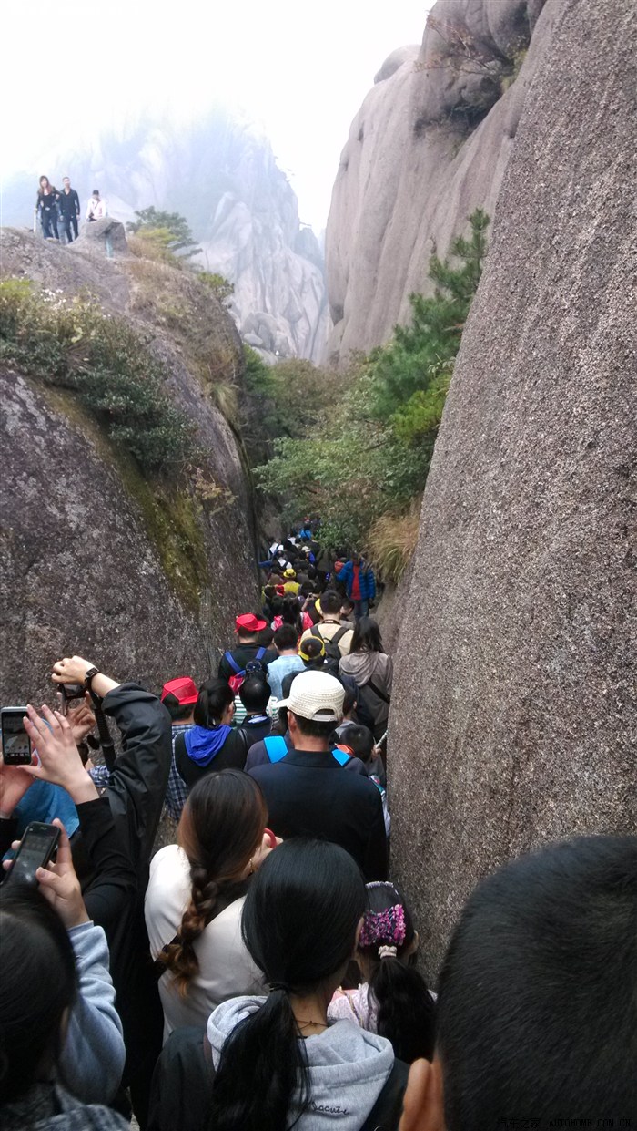 2日早晨4点起床,走8分钟到东岭换乘站,买票(19元/人)上车20分钟到云谷寺新缆车站。缆车(80元/人)10分钟左右到达白鹅新站,游石笋矼、始信峰、黑虎松、北海、猴子观海、狮子峰、西海、丹霞峰、排云亭、西海大峡谷、谷底乘观光缆车(80元/人)到天海、上光明顶、14:30开始慢慢长队走鳌鱼峰、莲花峰、迎客松、玉屏站(80元/人)下山到慈光阁站,坐换成车(19元/人)21点回客栈。