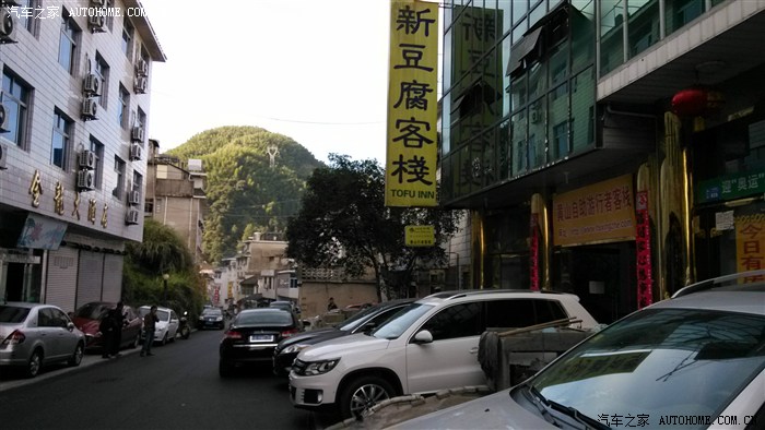 18:20到达汤口,但出口被警察封闭,叫我们在下一个出口下。没办法,只好多走54kM,重返汤口, 19:30点才到达事先预定好的客栈。客栈没有停车场,让我们把车停在无人看管的路边,为了安全,我们只好自己掏钱找停车场,30元/天。