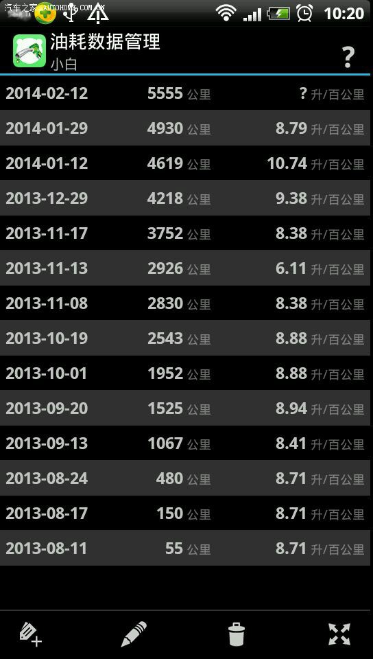 小熊油耗软件计算的准确油耗(计算范围:从提车时的17公里--现在的5800+公里)